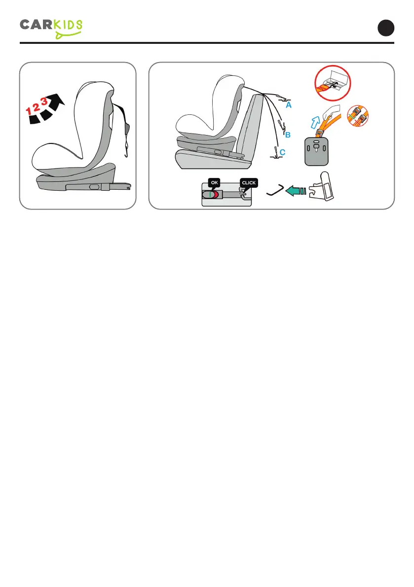 ISOFIX-Systems nach hinten (die Anzeige wechselt von grüner zu roter Farbe),