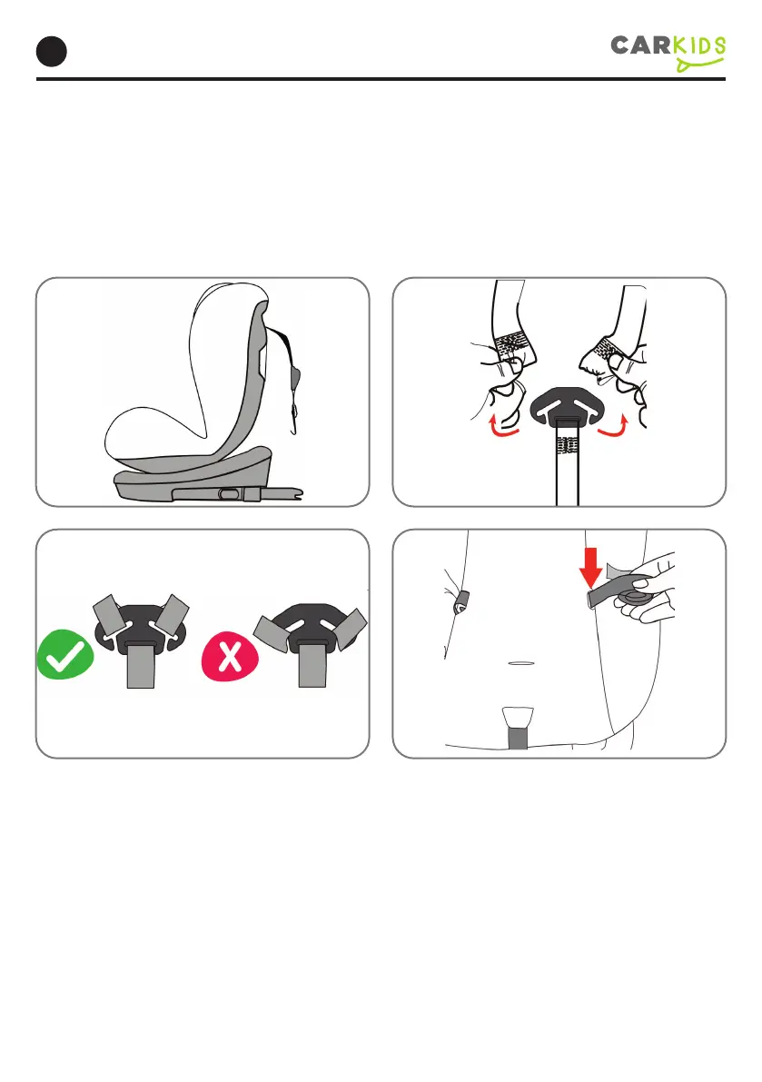 4.4.4 Puis en étant face au siège enfant, désengagez la sangle d’épaule à