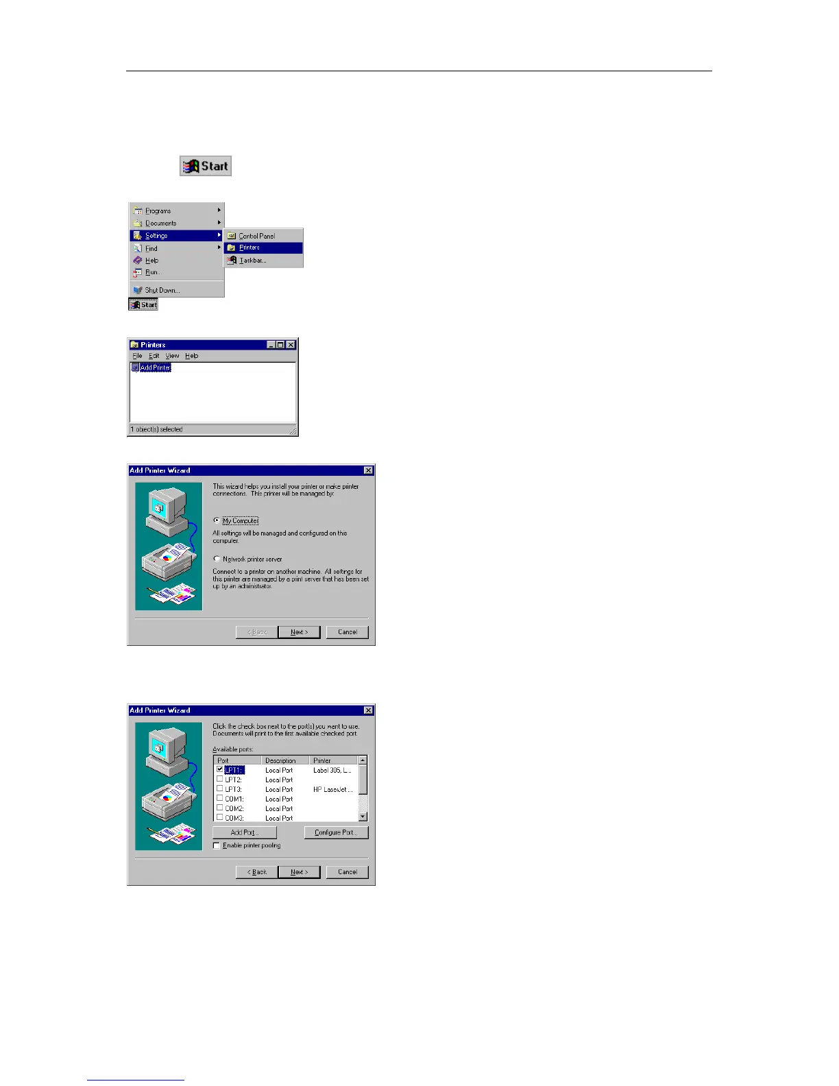 Double click Add Printer and the first dialog of the Add Printer Wizard appears.