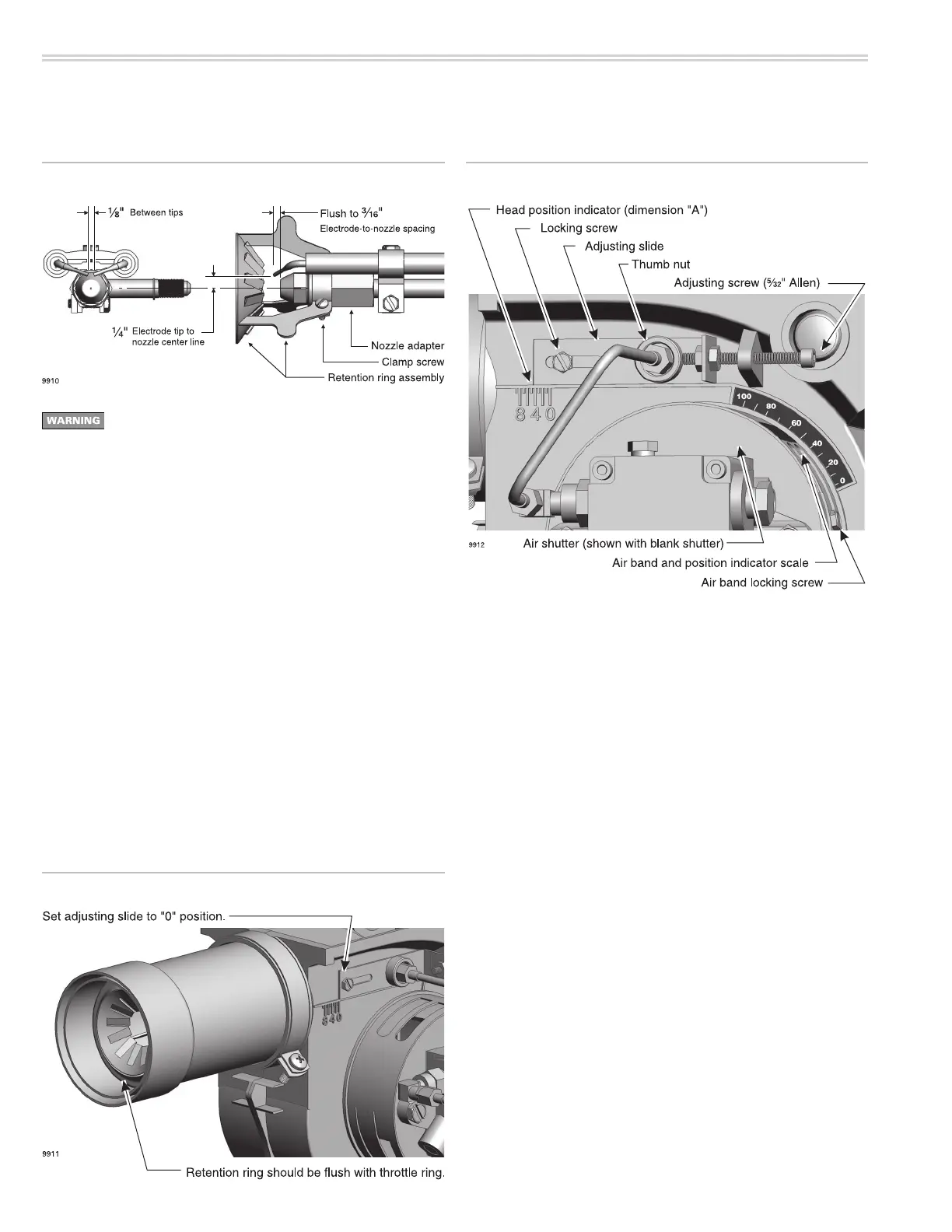 Figure 10 Combustion head/nozzle/electrode settings Figure 12 Combustion head and air band adjutsments
