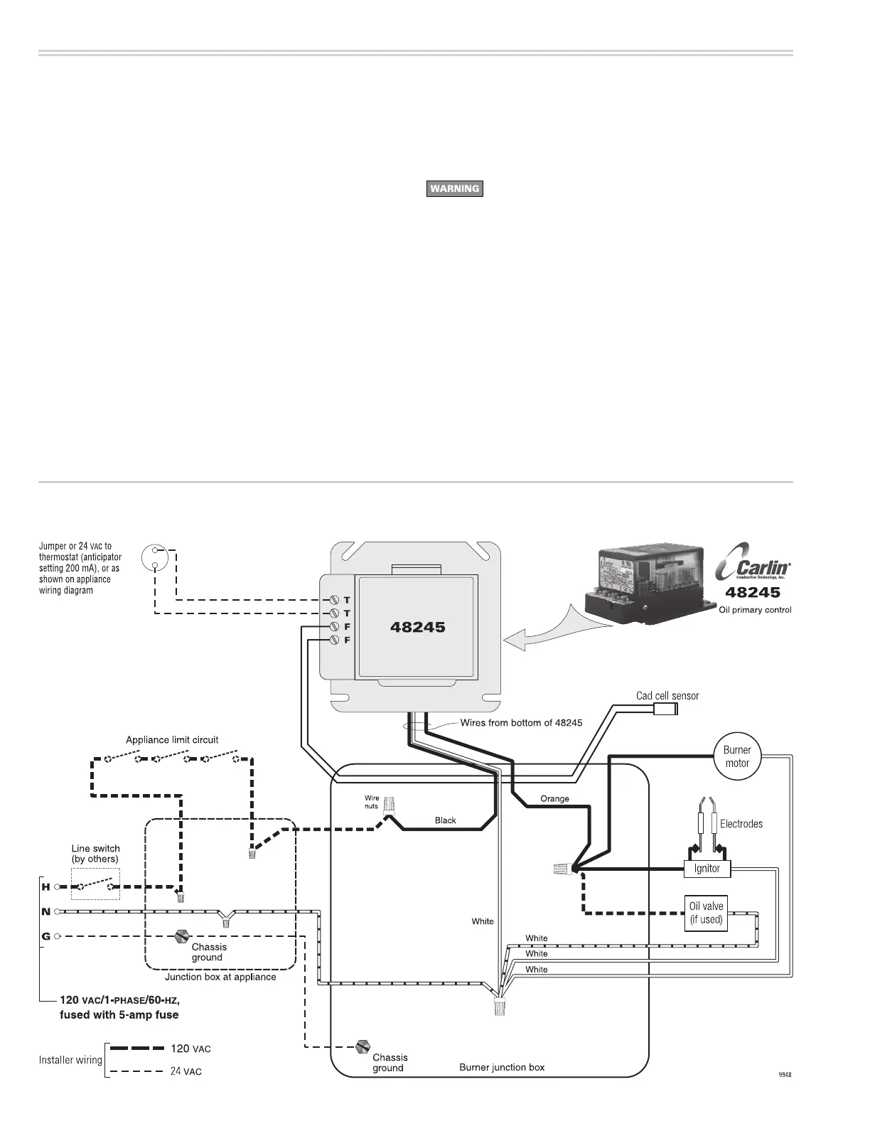 Figure 16 Burners up to 3.0 GPH only, wiring using Carlin 48245 primary control (see appliance manual or separate wiring