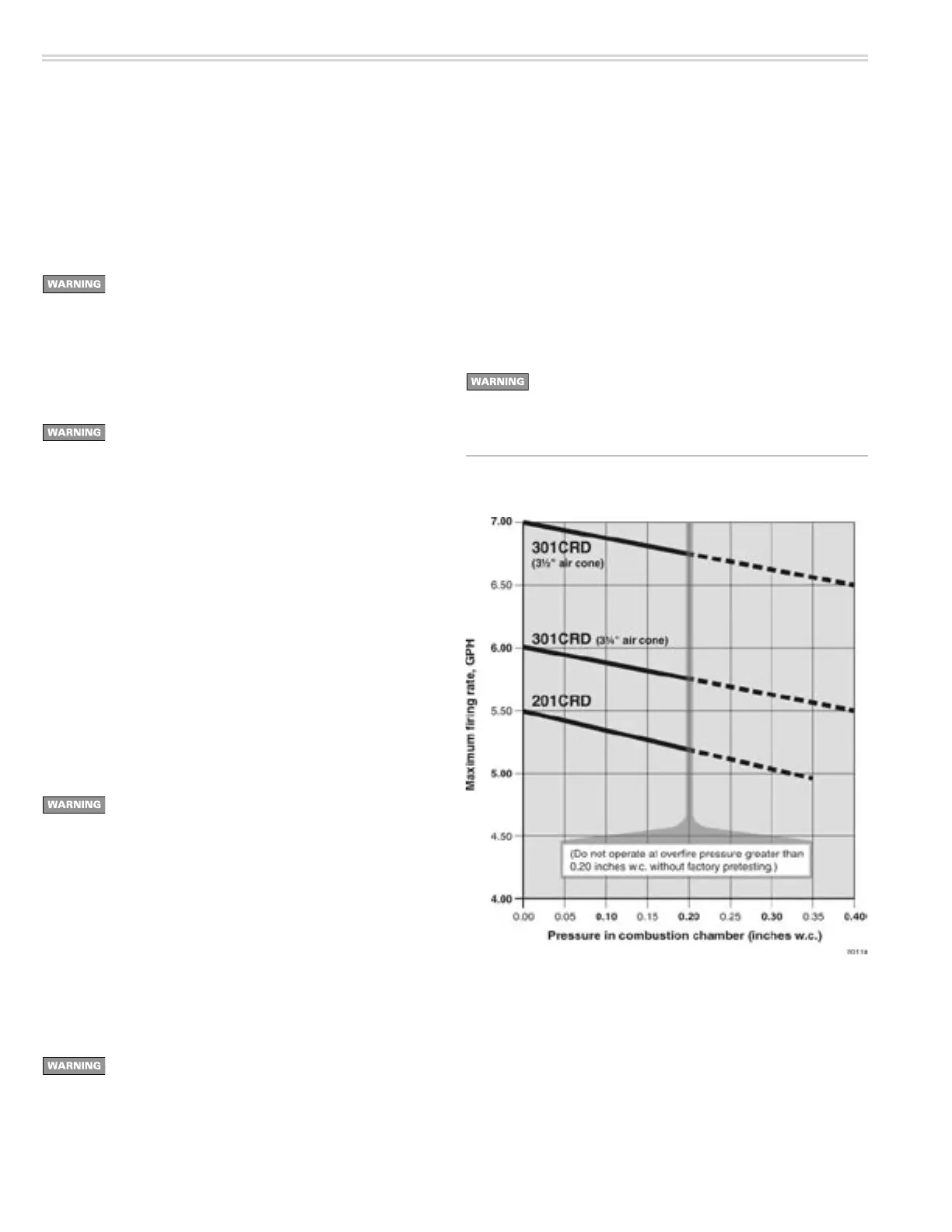 Do not apply 201CRD or 301CRD burners at positive overfire