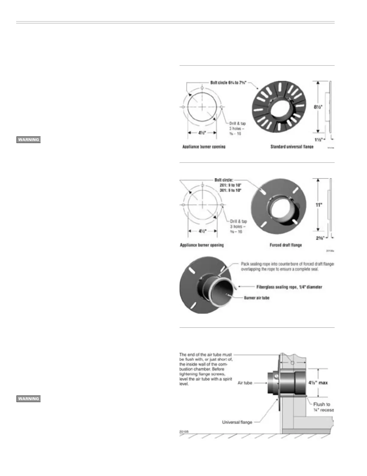 10. Forced draft adjustable flanges: Use ¼-inch diameter fiberglass sealing