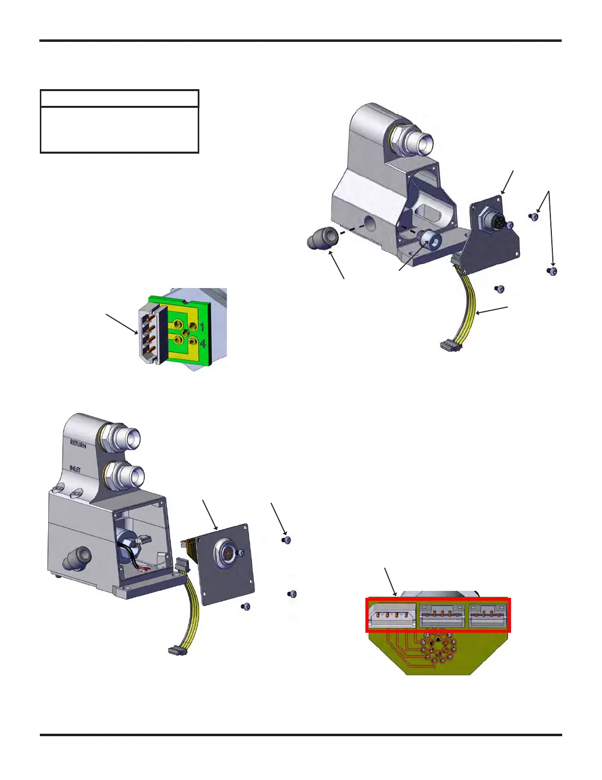 Unscrew the four screws (7) holding the connector