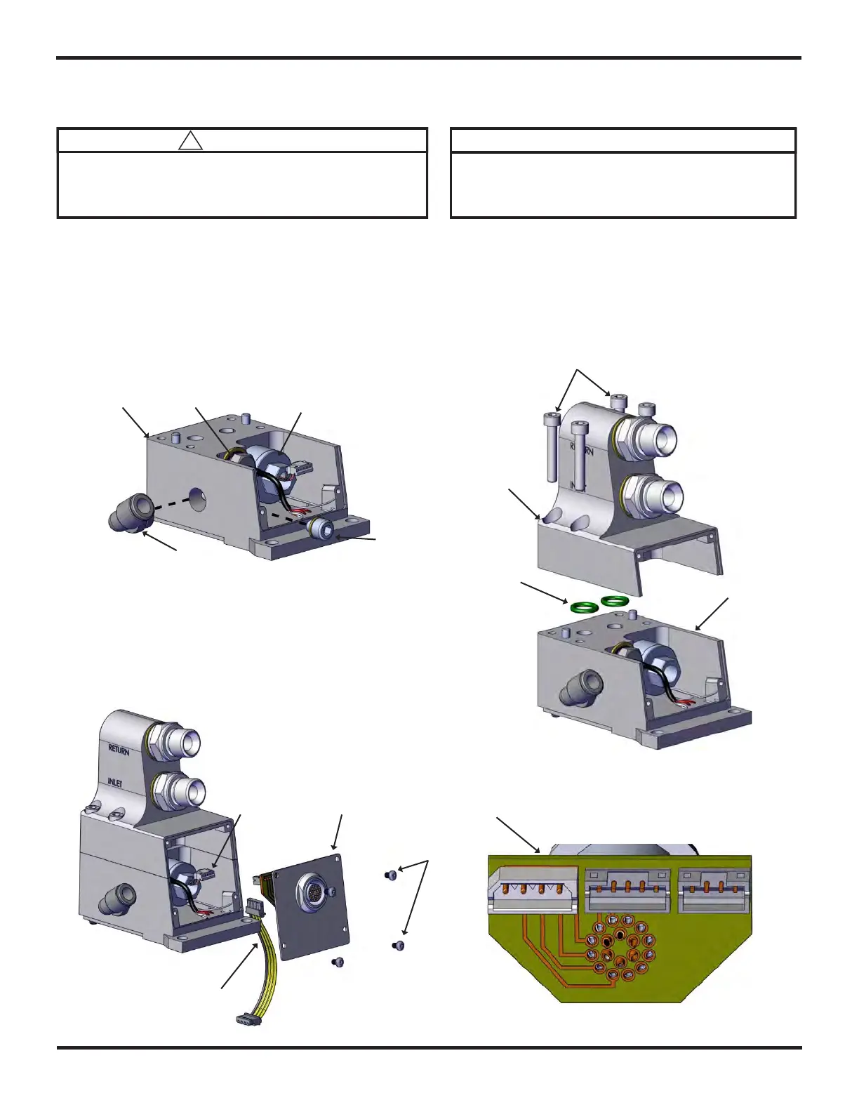 Place the O-rings (6) in place in the upper connection housing (7) and using the four screws (8) fasten it to