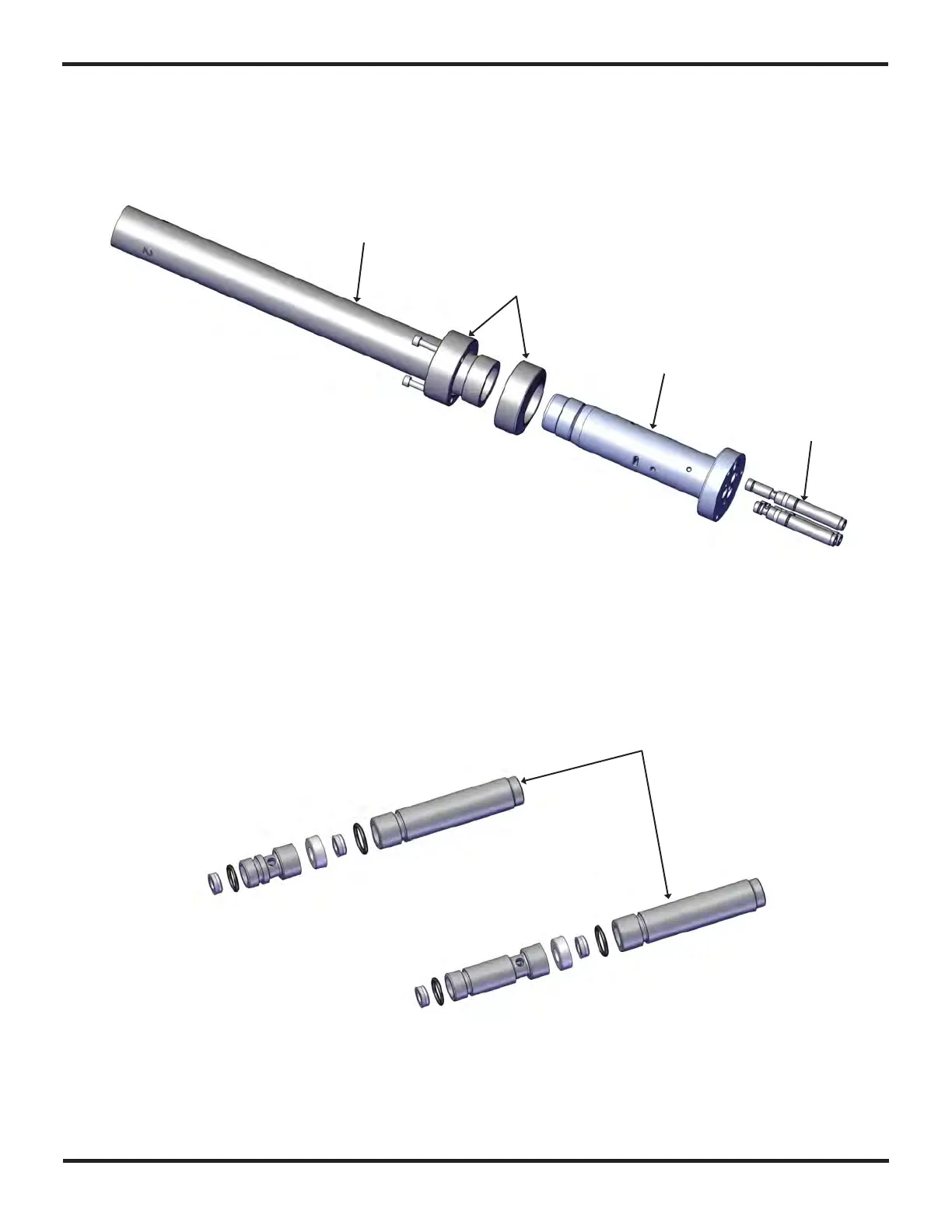 Inside the central body axis are packing sets (4) that seal off the needles from material pressure.