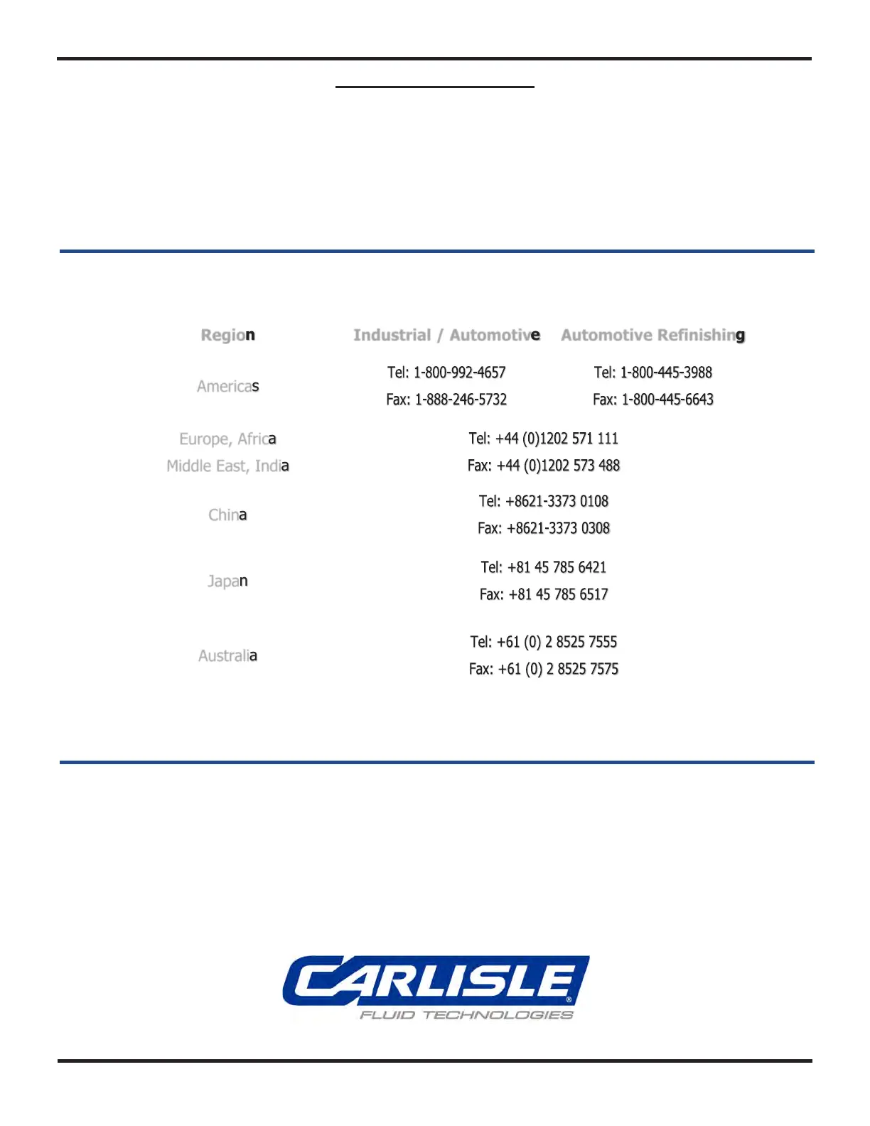 For specific warranty information please contact Carlisle Fluid Technologies.