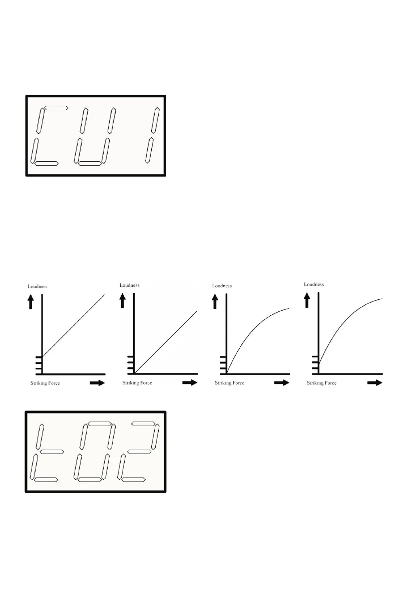 Press the TRIGGER button to enter trigger settings, the screen will first display pad curve CU?