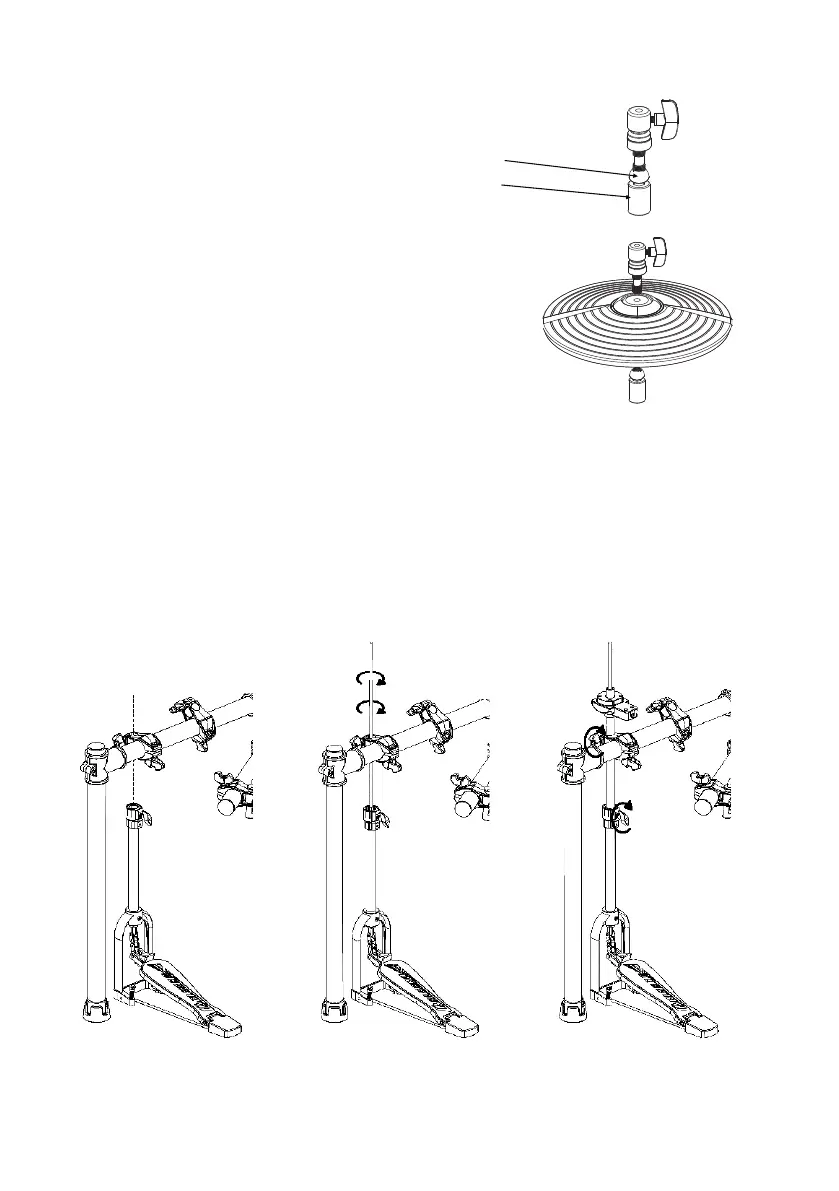 2. Thread the metal rod through the frame mounting point and screw into the hi-hat