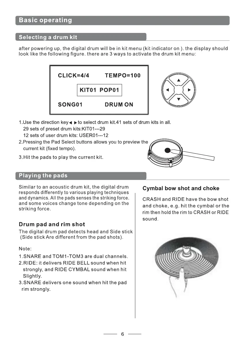 Carlsbro CSD500 - Basic Drum Set Operation; Drum Kit Selection and Pad Playability