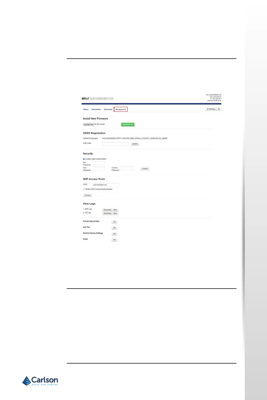 The Management tab provides access to the rmware update tools, a