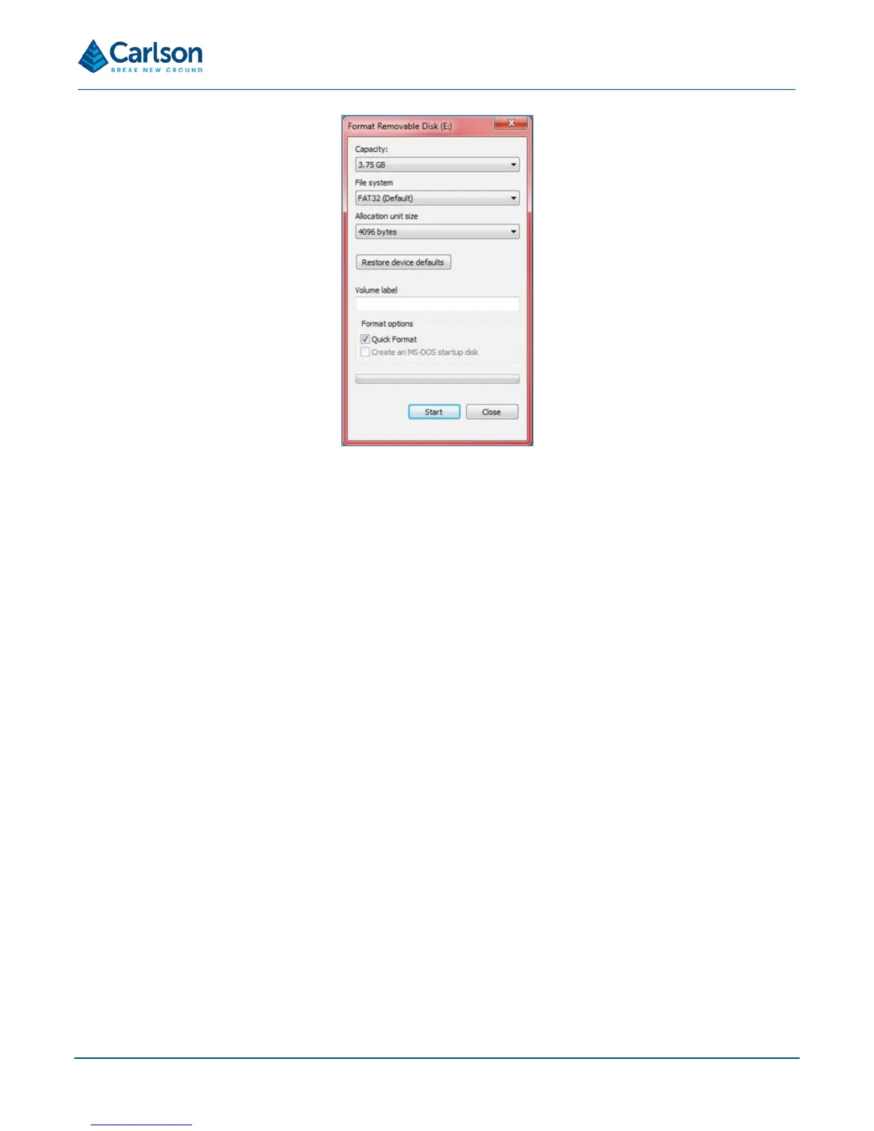 Click Start to format the USB drive.