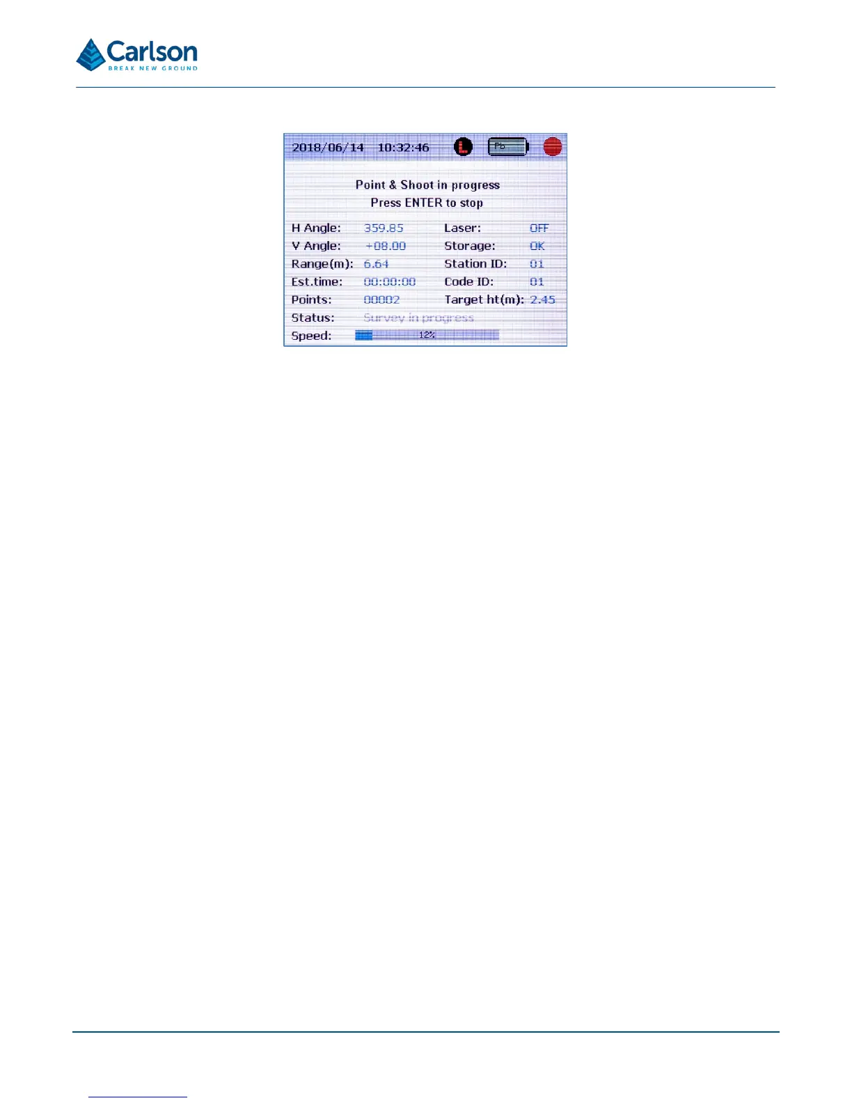 • Target ht: current user-defined target height. Return to the main menu and re-select Point and shoot