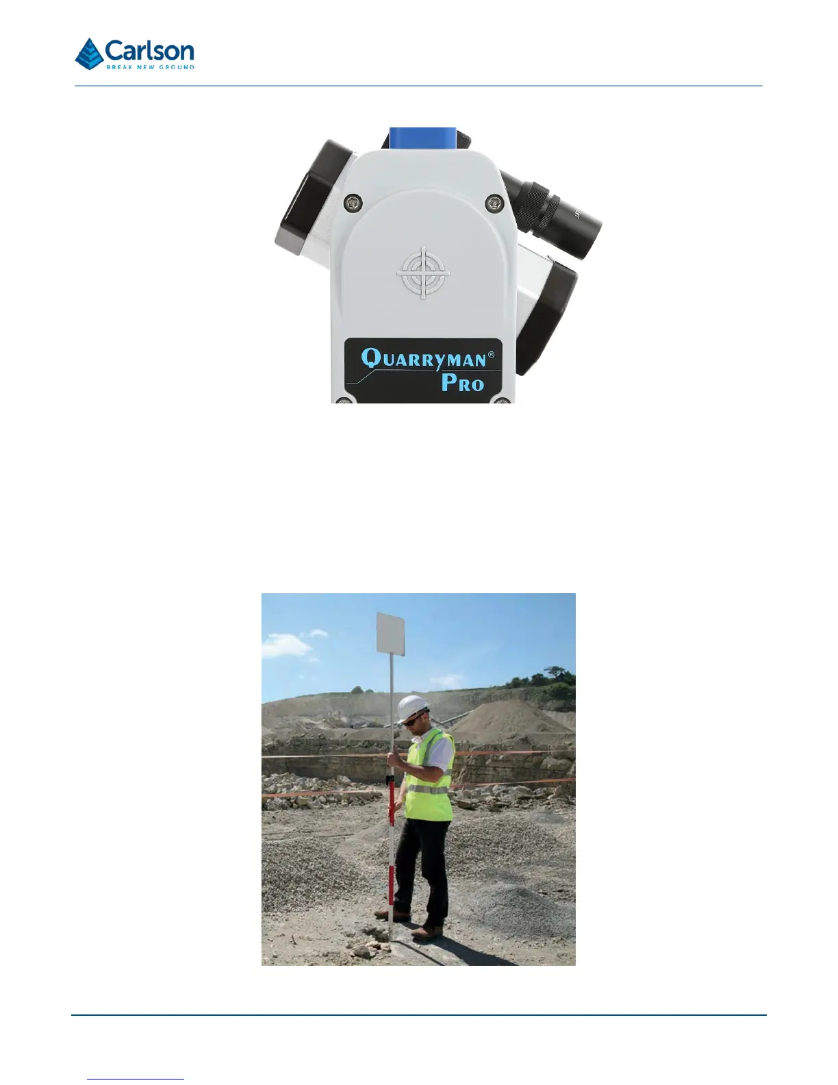 location on the quarry floor. Therefore a person holding a tall target on a pole should stand over each collar. Use