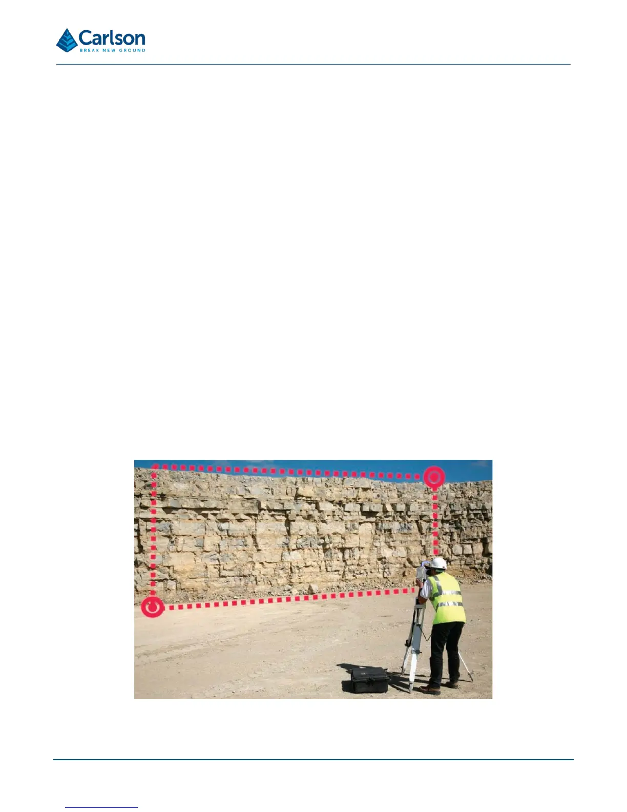 cases the instrument will always be directly shooting to the feature being surveyed – such as a rock face or stockpile