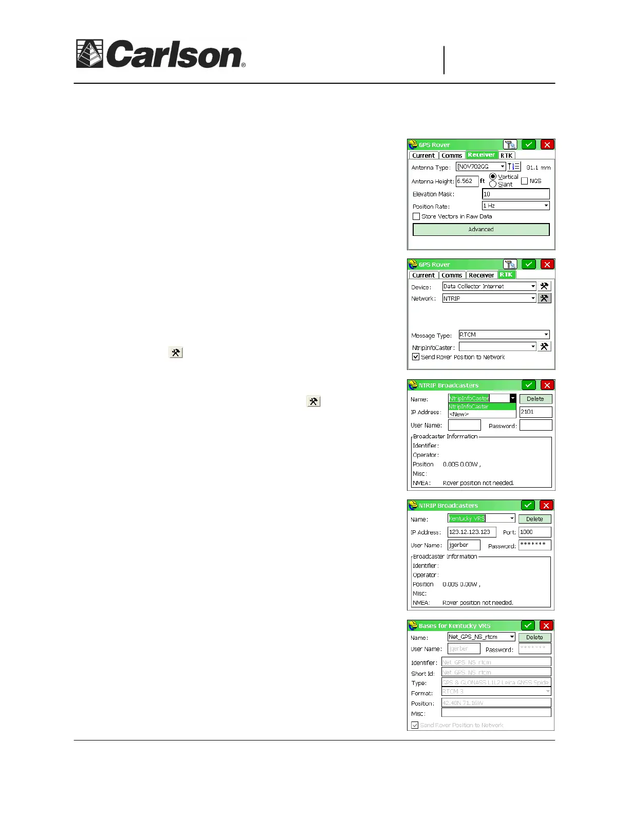 and tap “GPS Rover”. Set the Manufacturer to “Carlson”