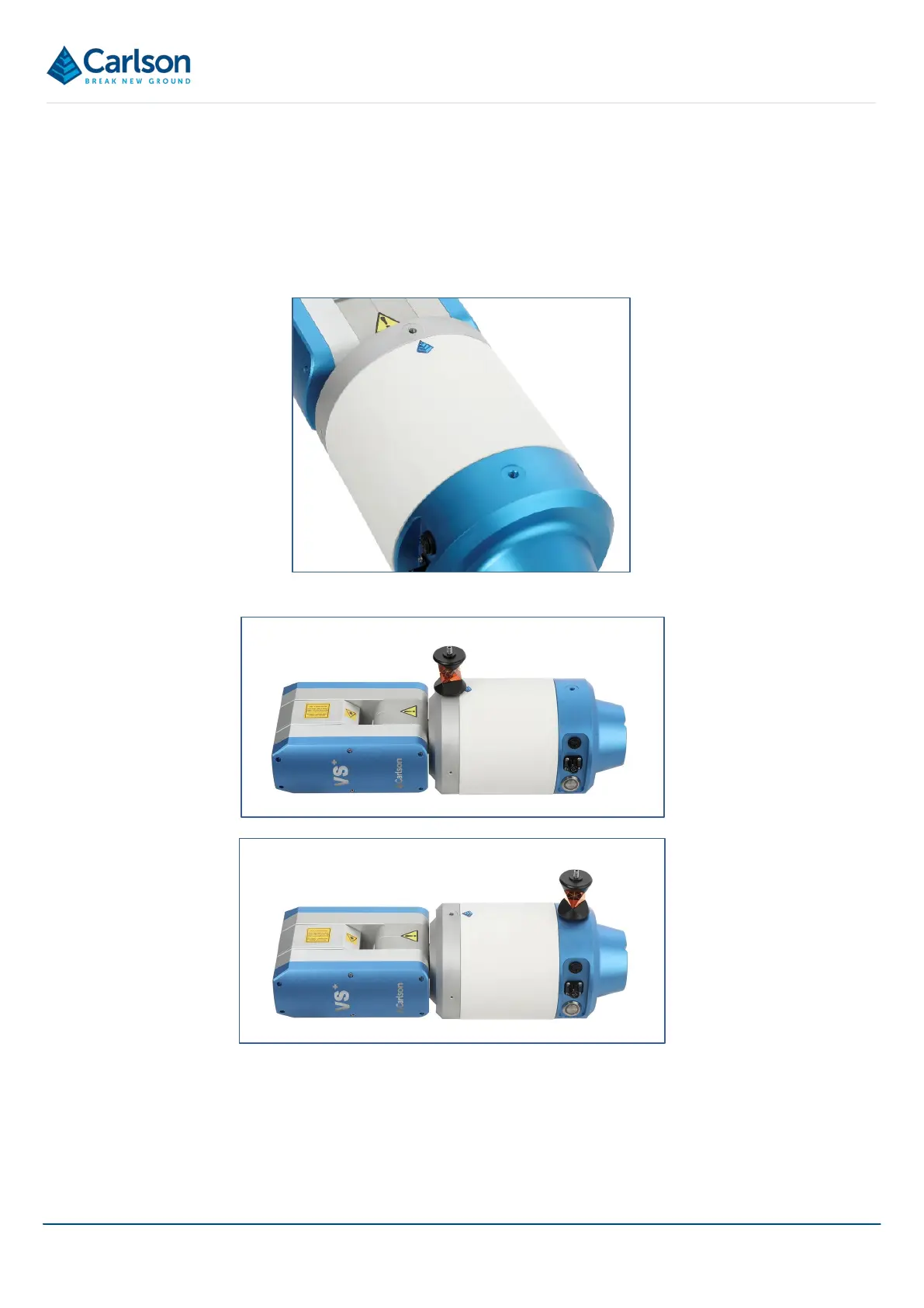 The top of the horizontal housing is marked by a Carlson pyramid logo beside the front prism mount.