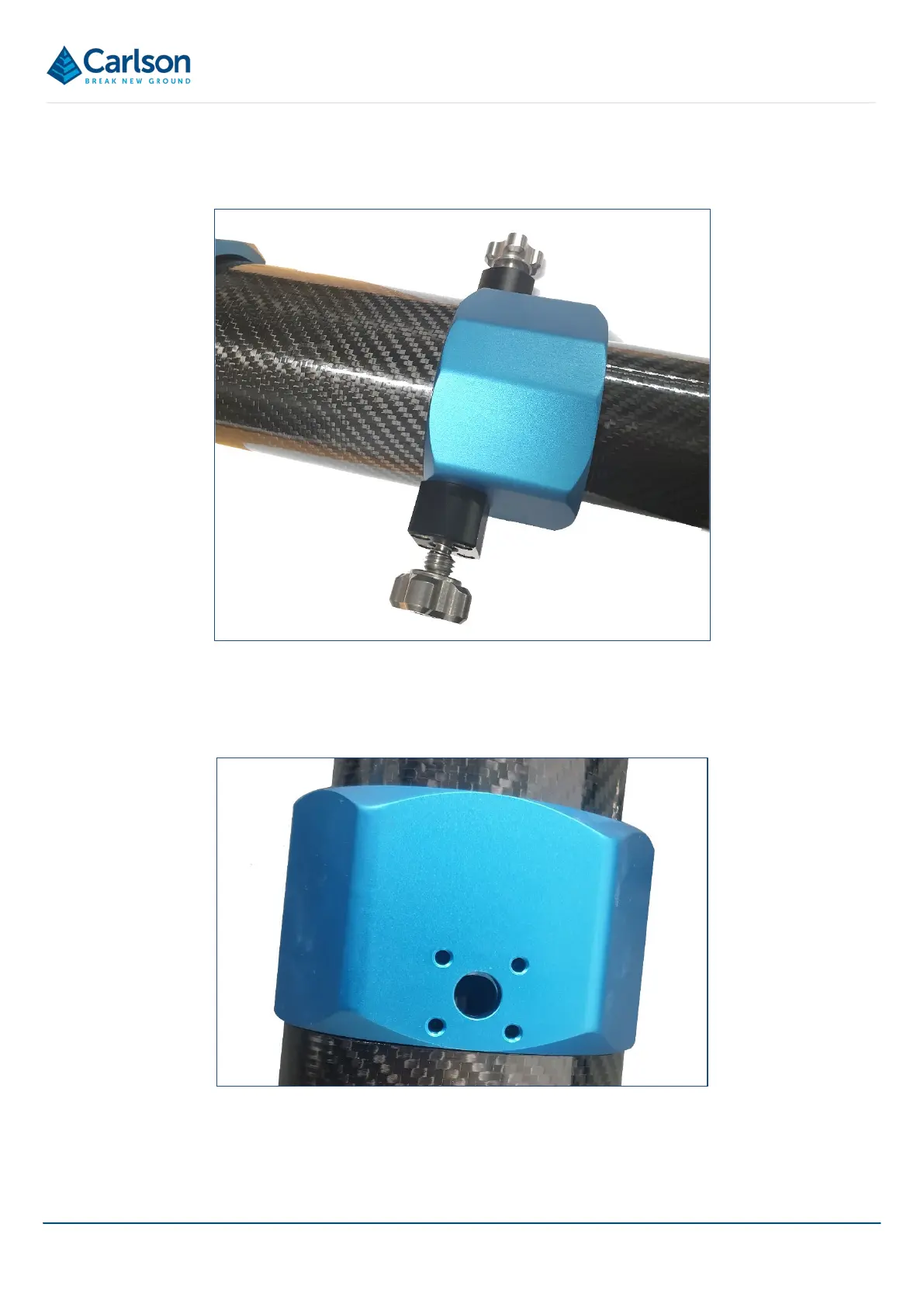 Figure 23 Aligning holes in the carbon fibre with hole in the blue boom joint