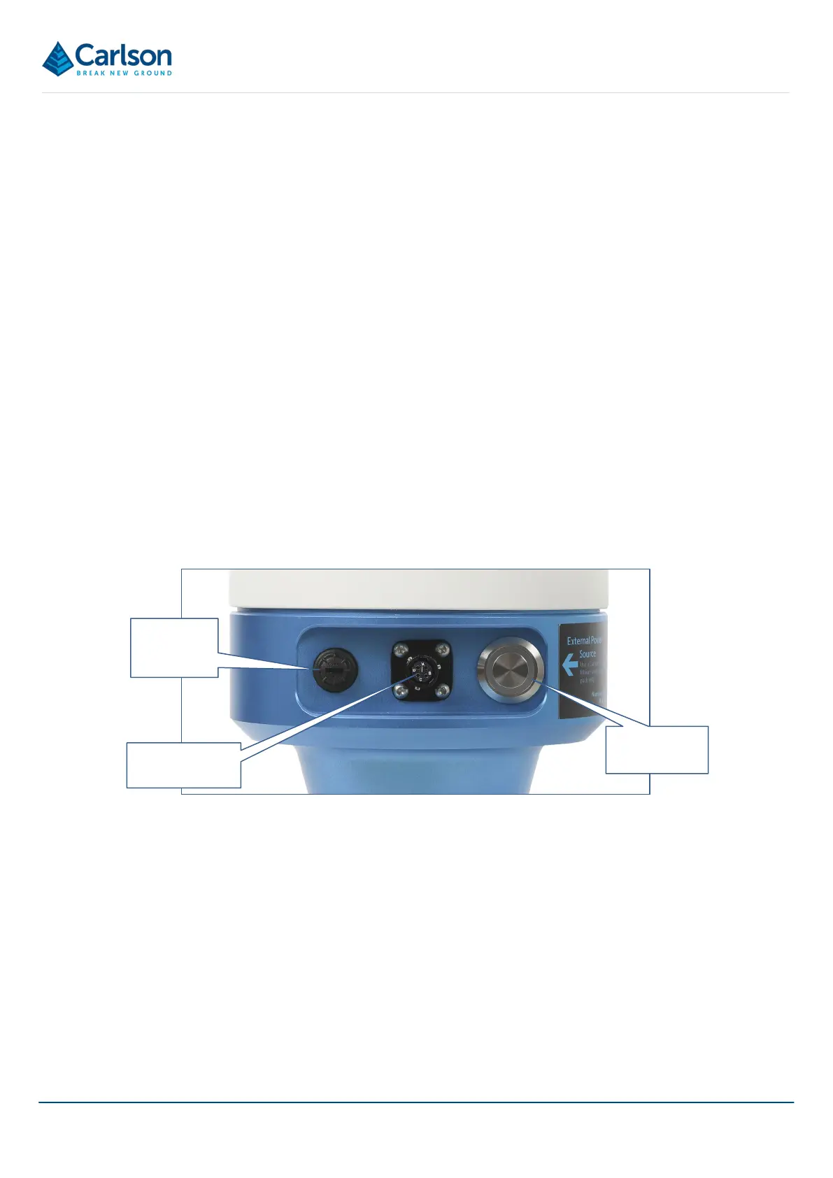 To power the VS+ from an external battery, connect a charged, Carlson lithium ion battery to the External Power