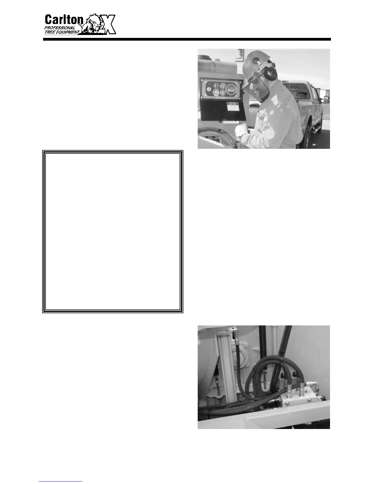 • Inspect bolts, hydraulic fittings, wiring