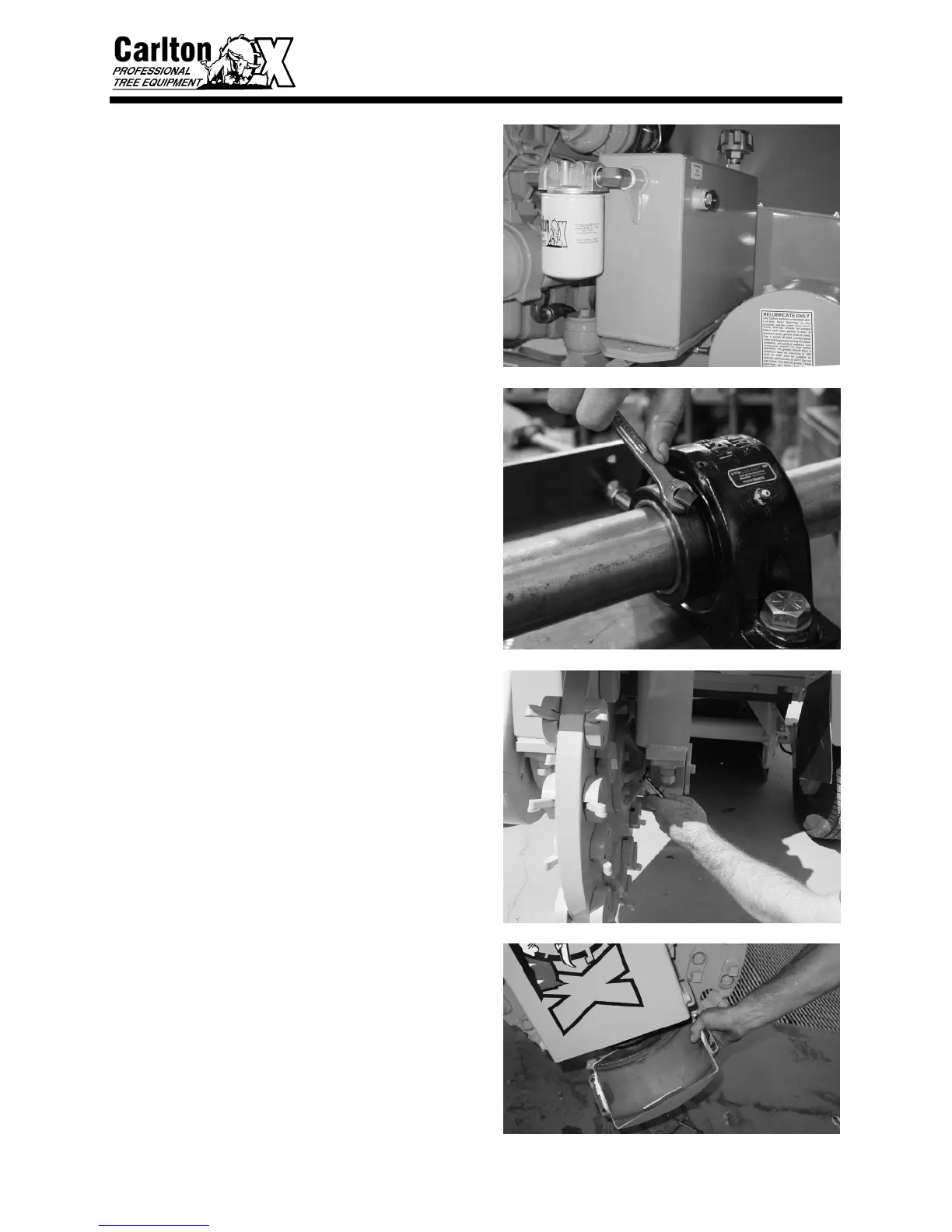 cutter wheel bearings for tightness (weekly).