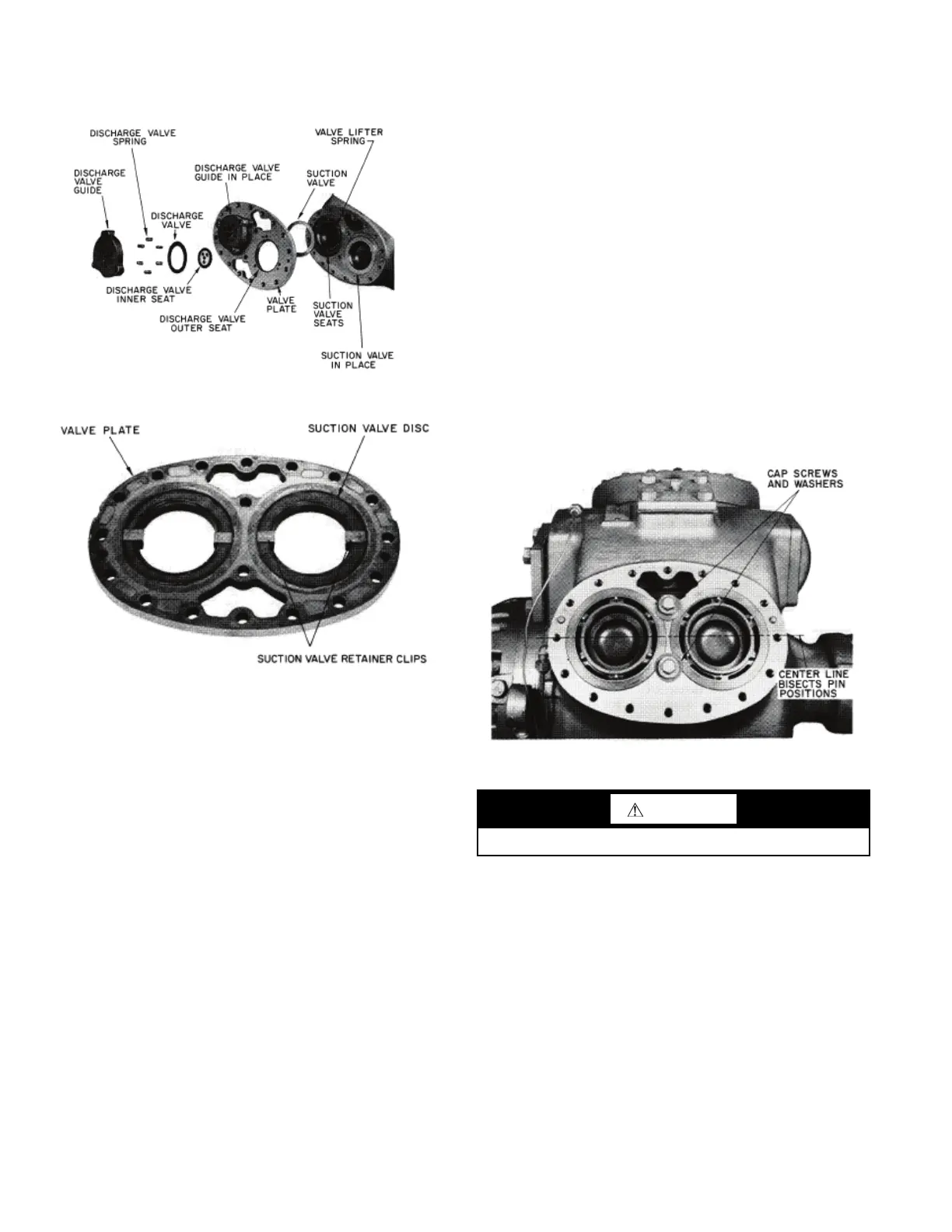 Never operate compressor with heads or valve plate removed.