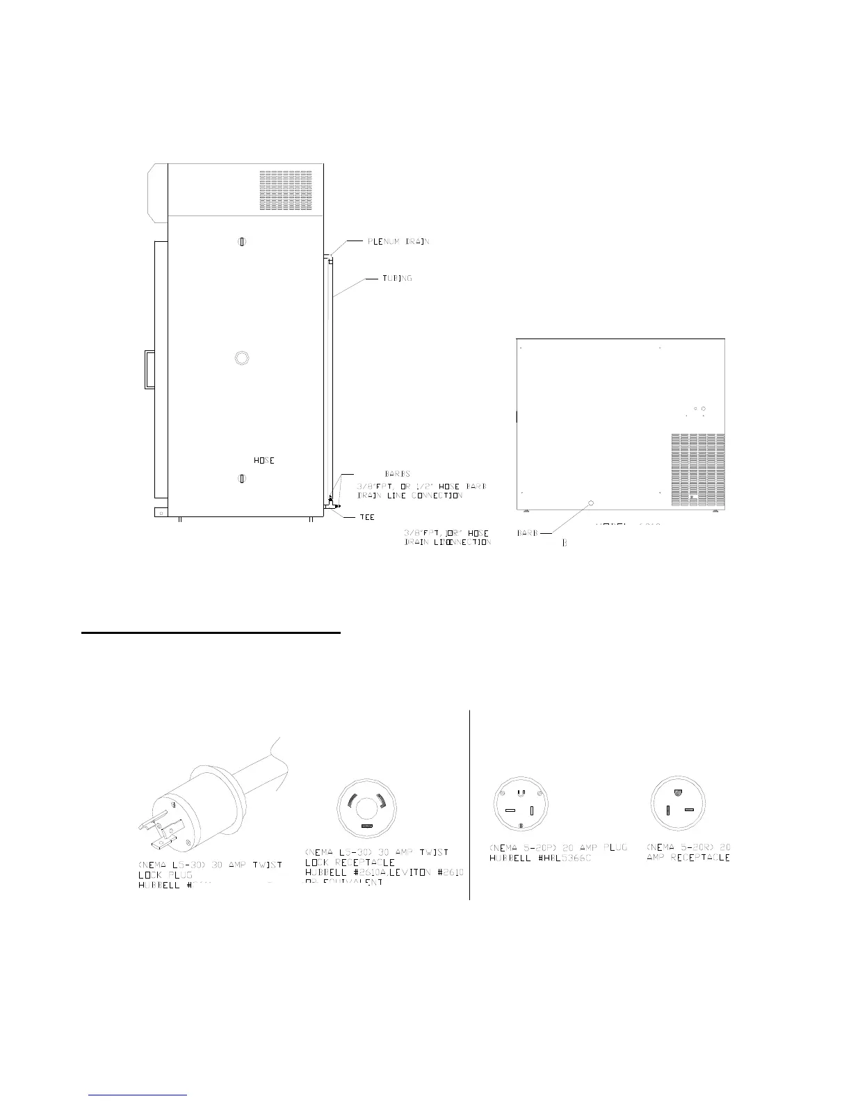Connect a 3/8” NPT drain line to the drain connection located on the lower back side of the chamber. The figure