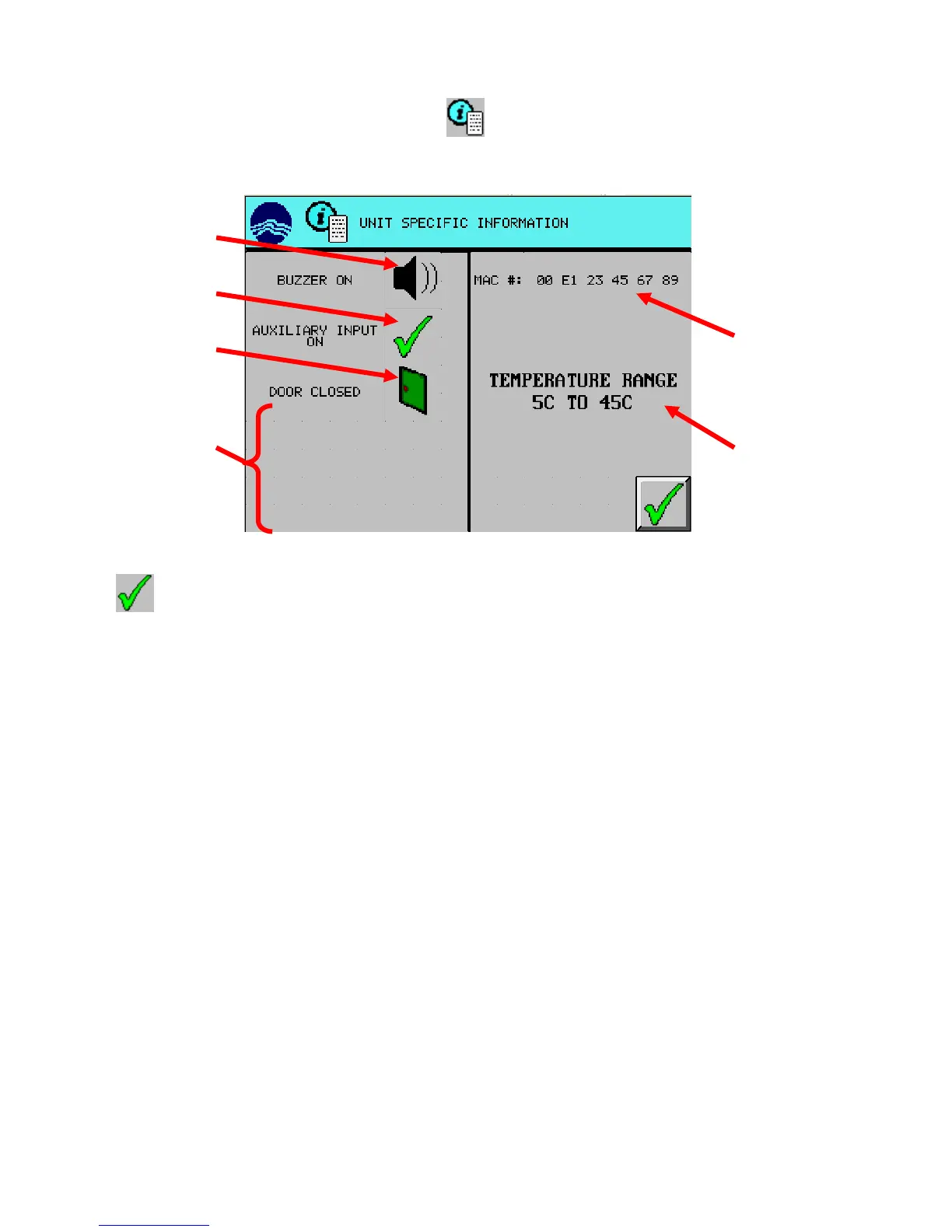 For additional unit specific information, press the (UNIT SPECIFIC INFORMATION) button from