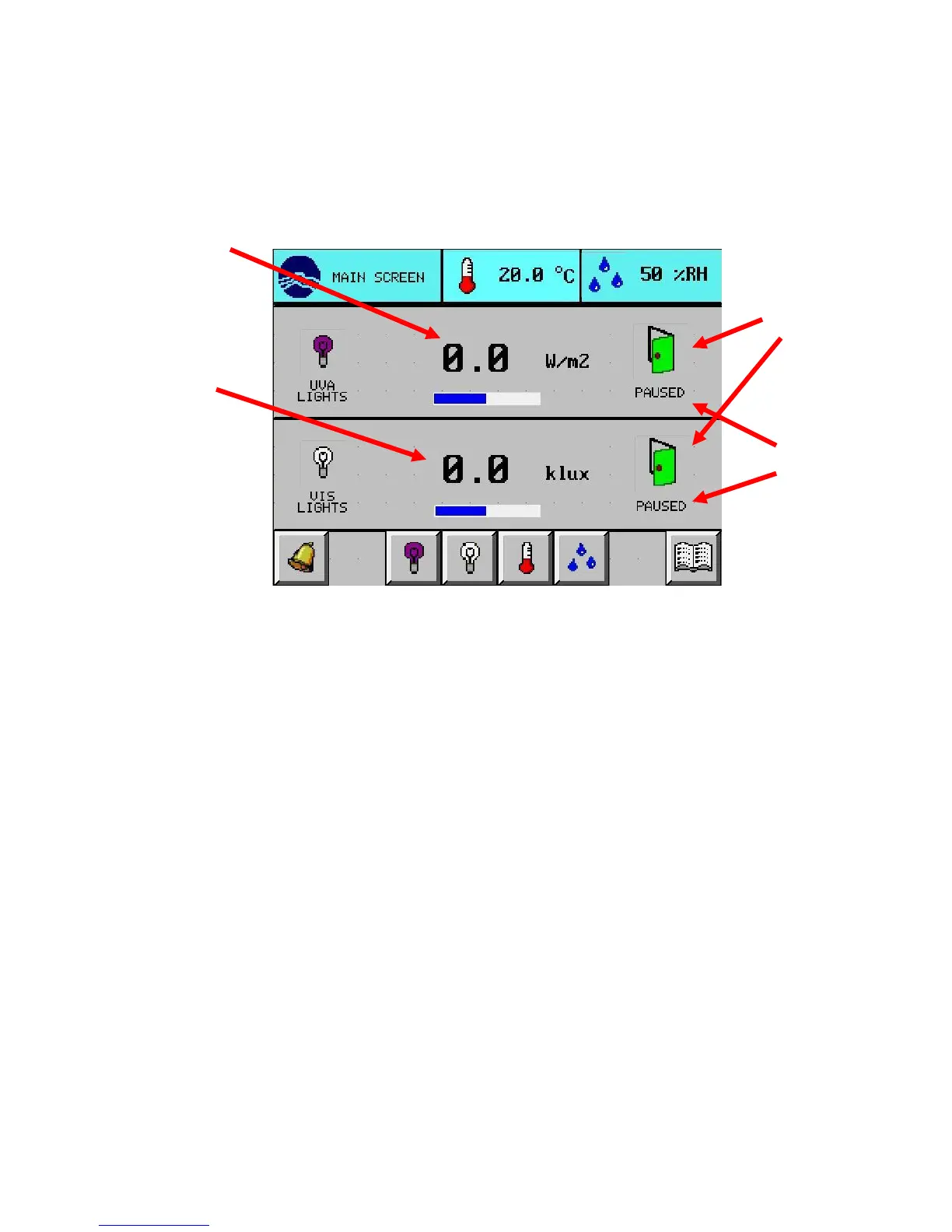 picture below). Closing the door will automatically turn the lights on and resume the test.