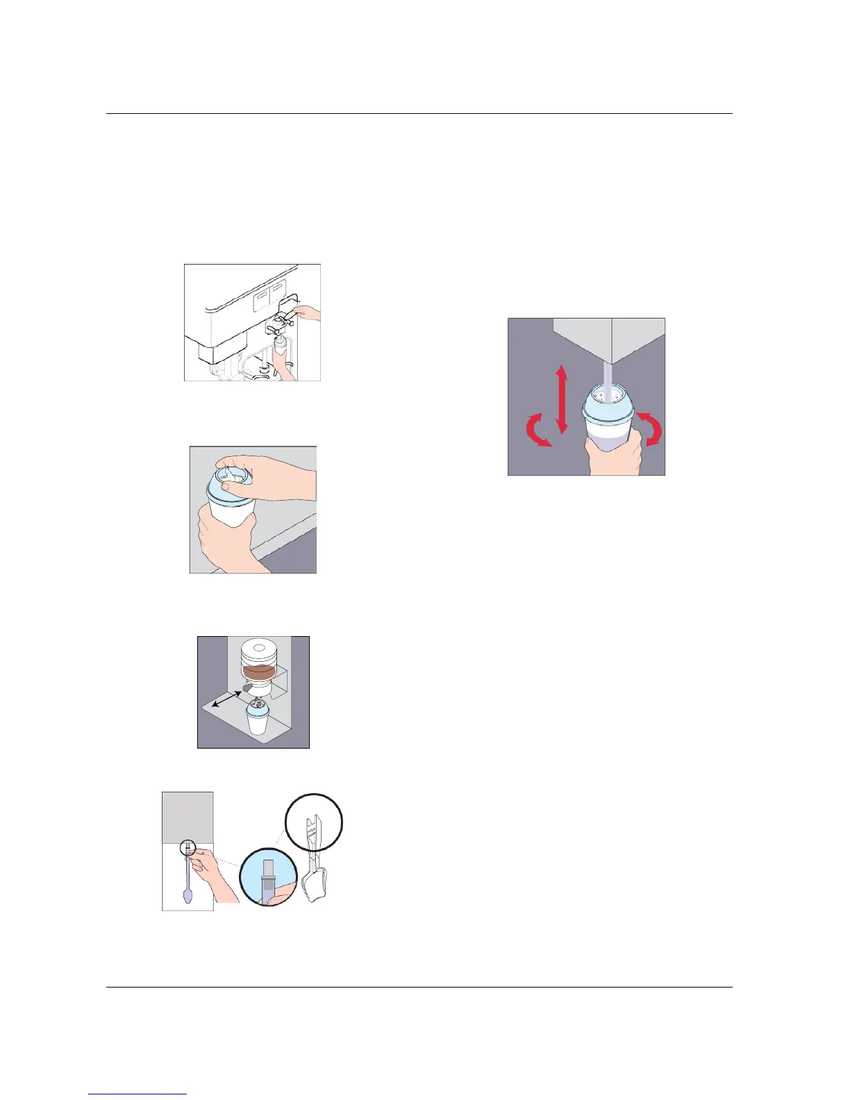 1. Hold a cup under soft-serve dispensing nozzle.