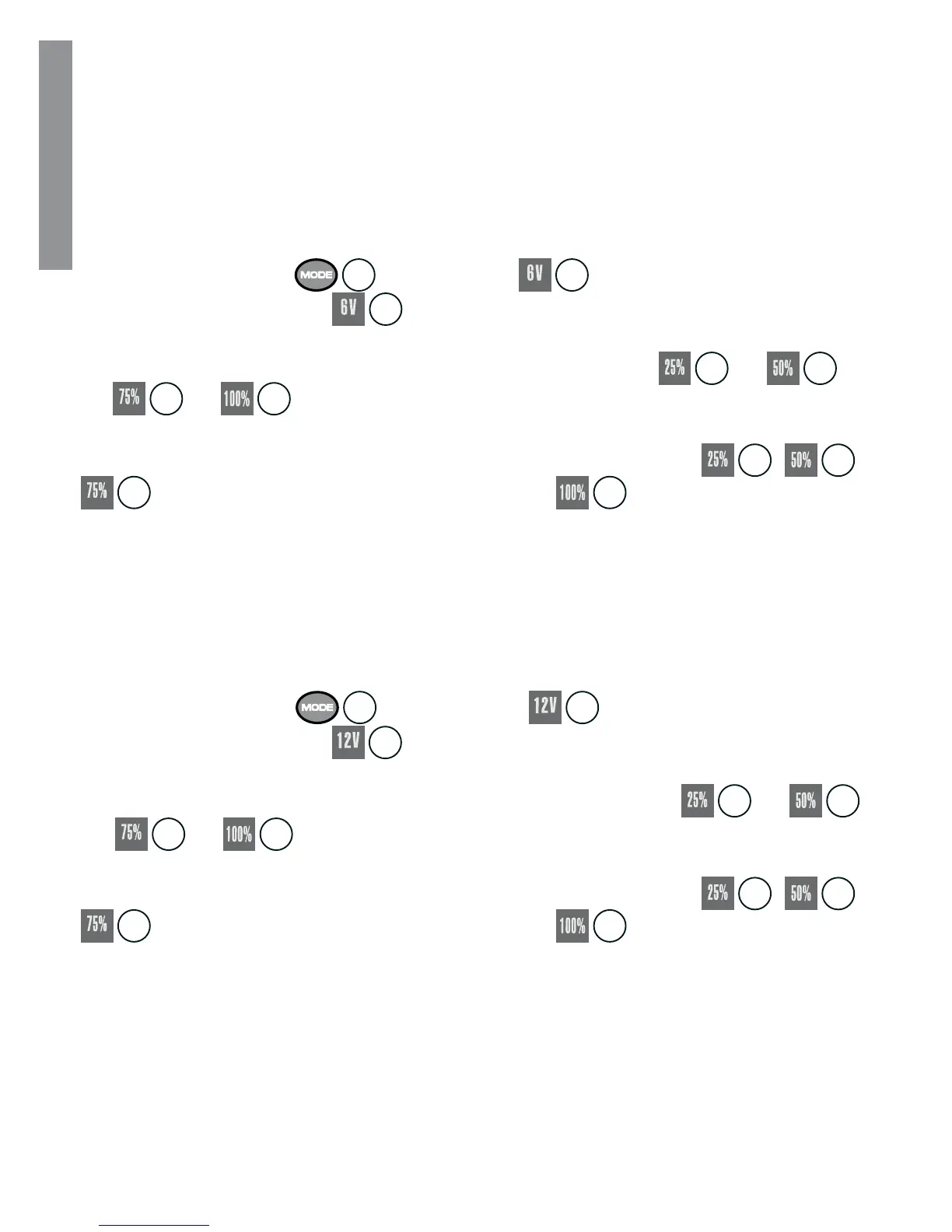 This mode is suitable for charging 6V batteries with capacity range from 1.2-12Ah in normal