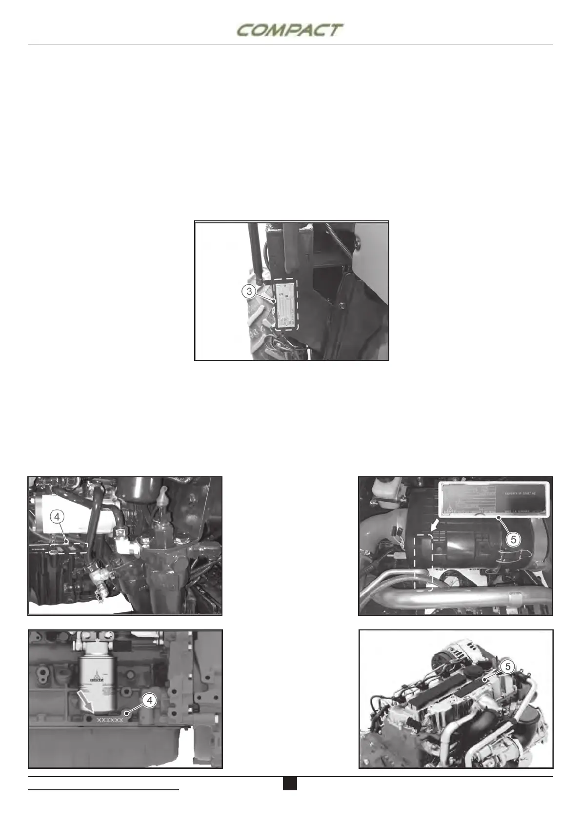 Rating plate (5) on the top RH side of engine.