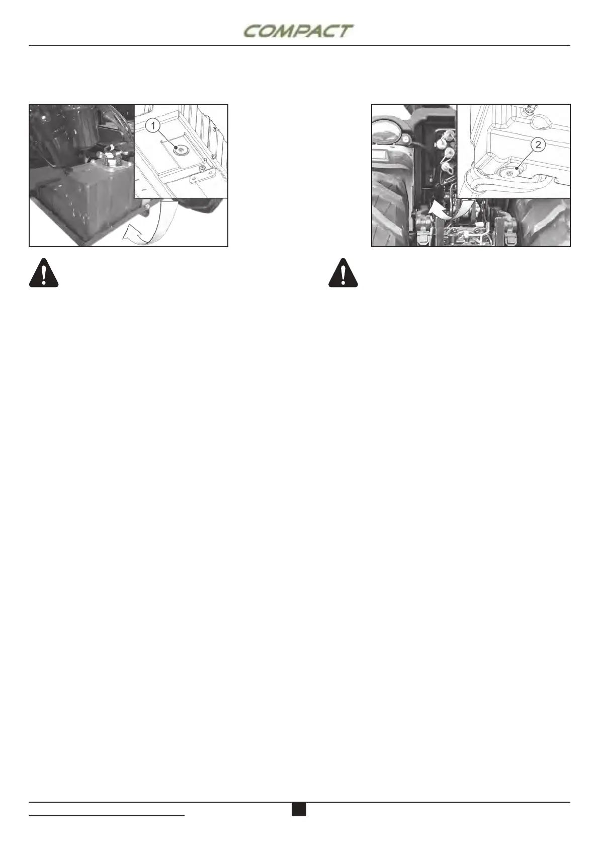 Open the fuel tank drain hole cap (1) to remove any