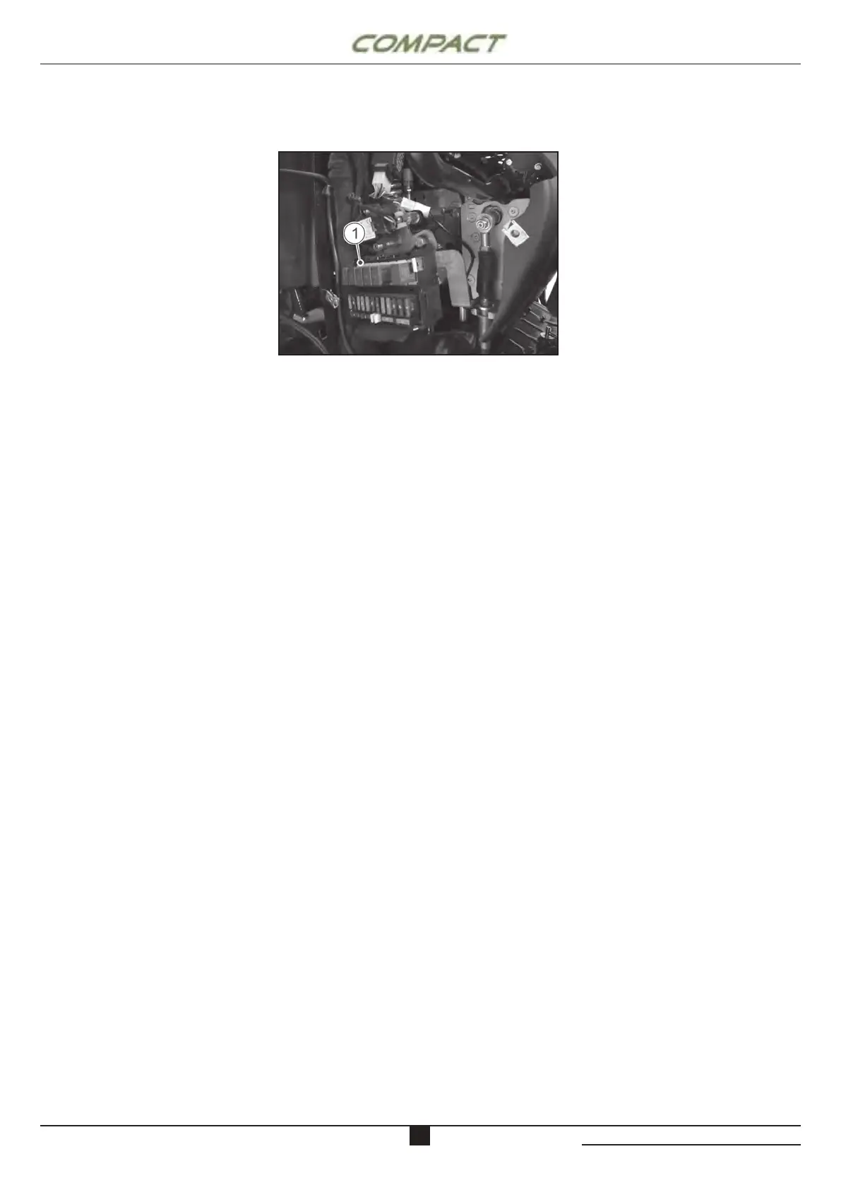 The main fusebox (1) is located under the LH panel of