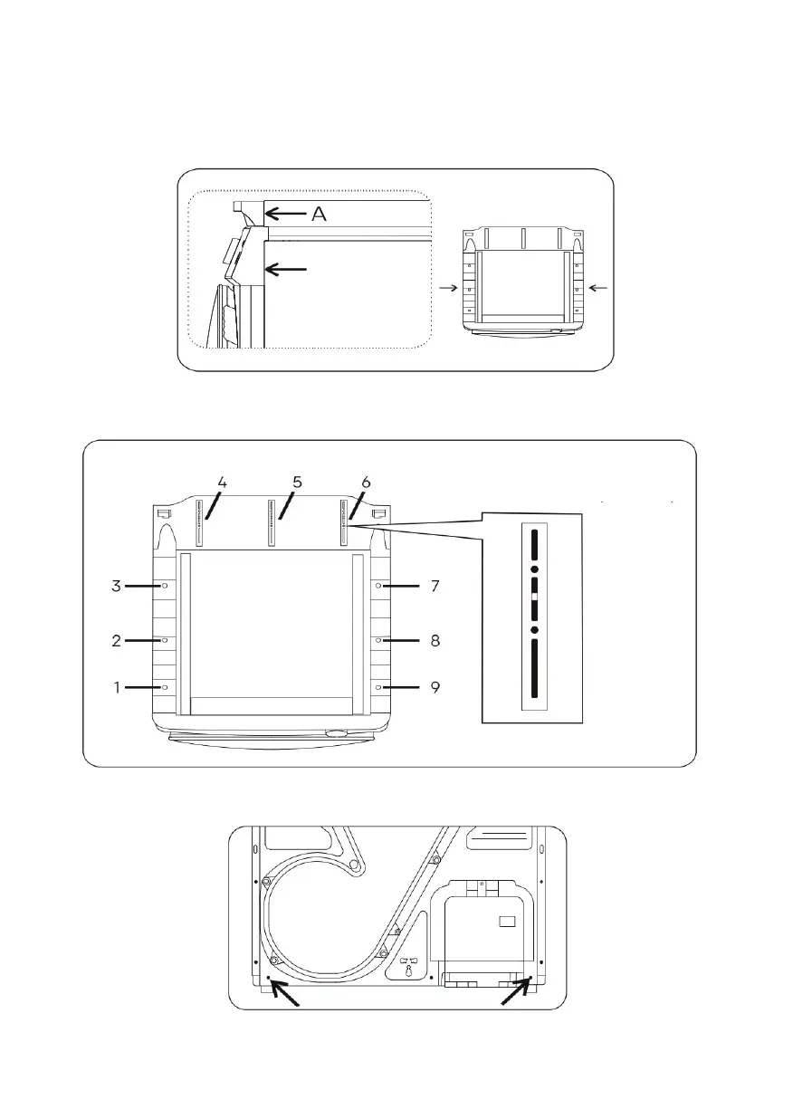 3. Drive 9 screws into the plastic parts of cover plates on the washer with an