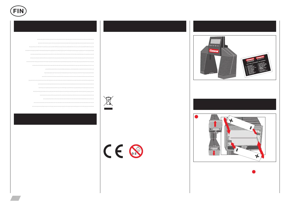 Tähän tuotteeseen tarvitaan 4 tyypin „AA“ paristoa (ei tule pakka-