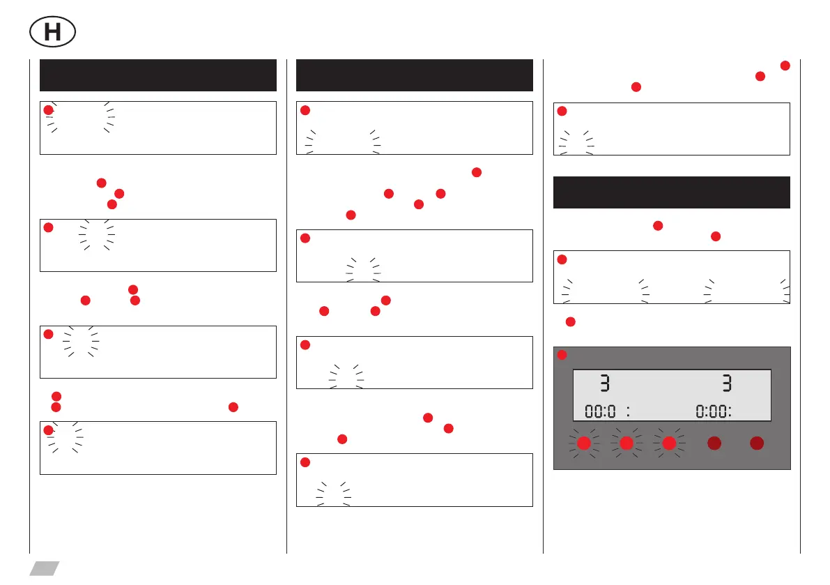 piros LED egymás után gyullad ki és a kijelző is visszaszámol.