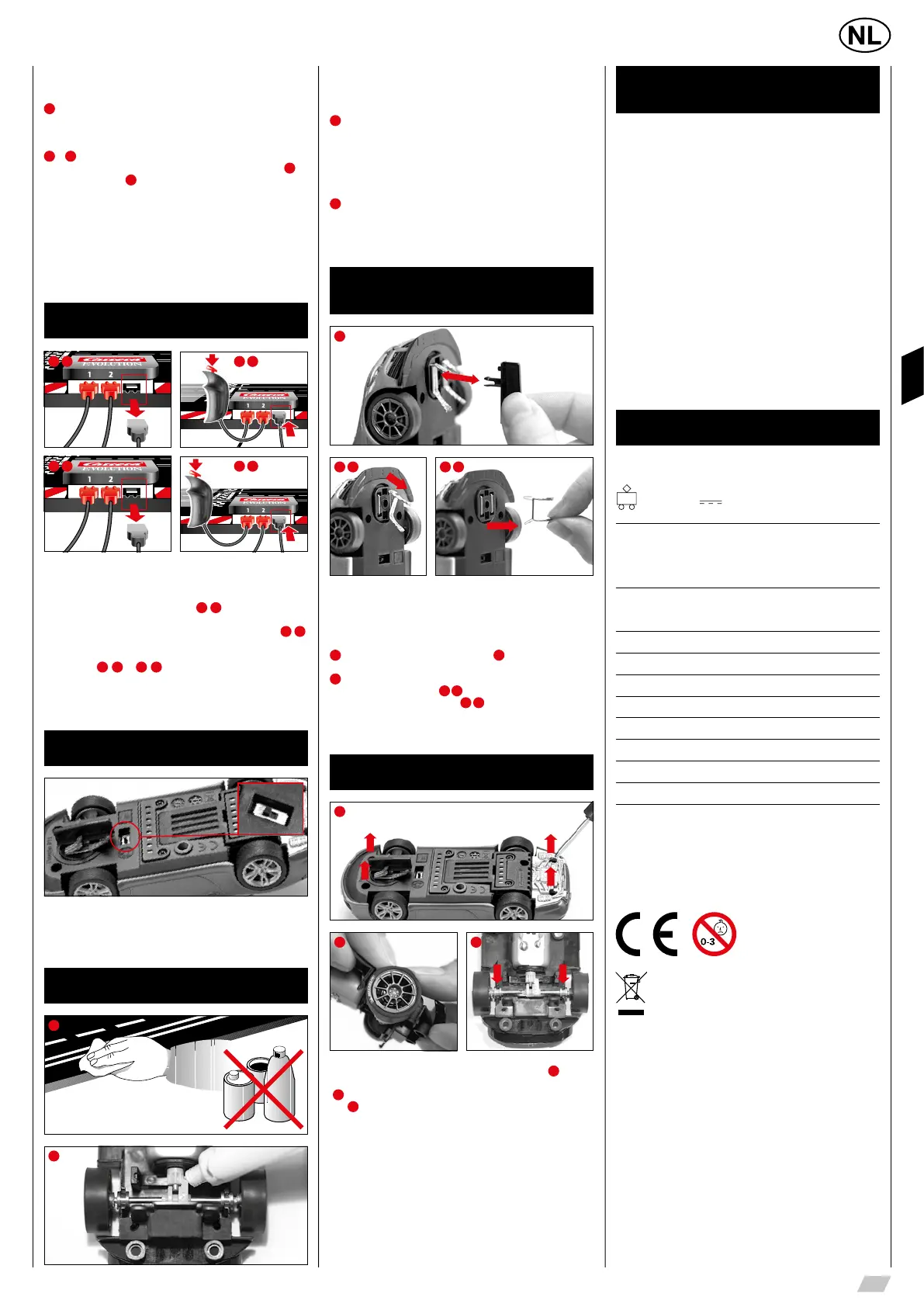 Om een correcte functie van de racebaan te vrijwaren, dienen alle