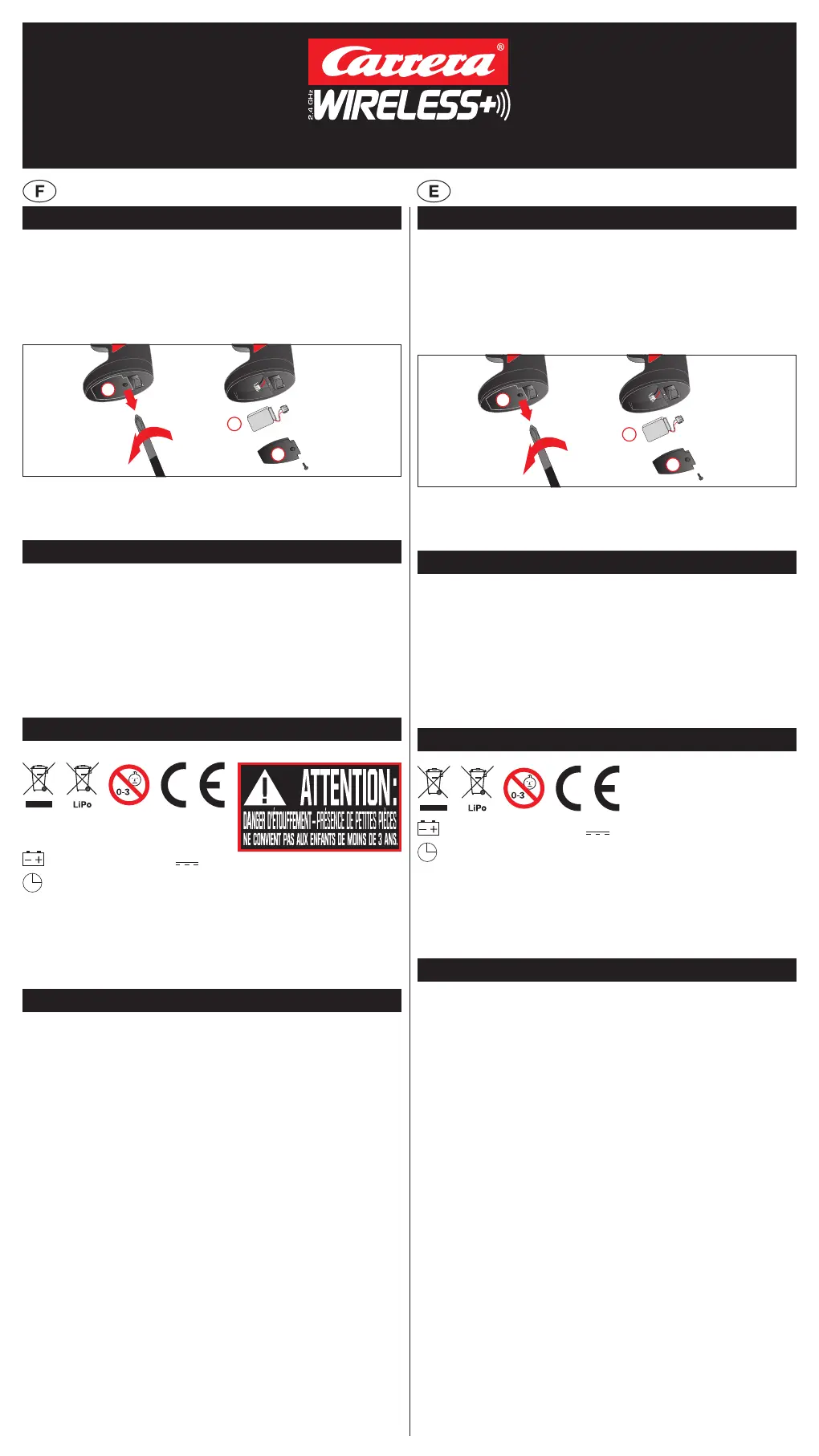 ¡El acumulador únicamente debe emplearse para el mando WIRELESS+ de Carrera WIRELESS+!