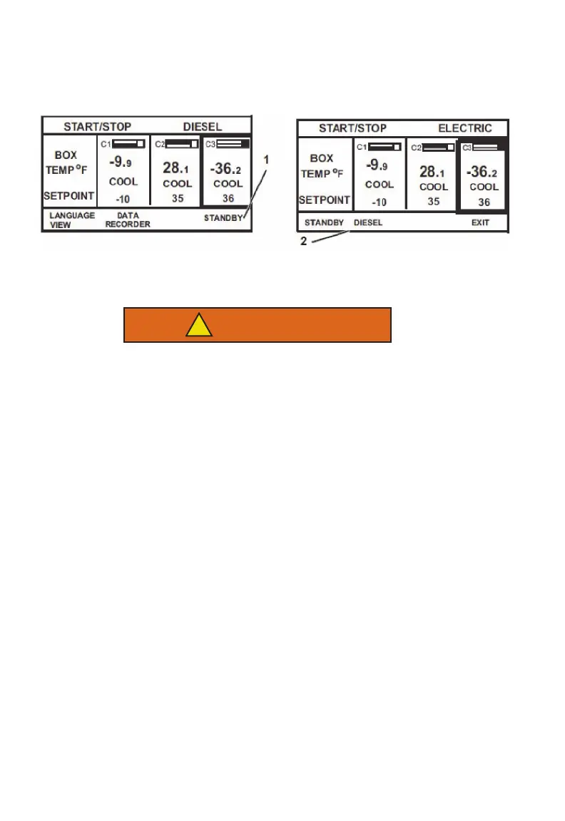2. Press the STANDBY soft key, the STANDBY & DIESEL soft keys will