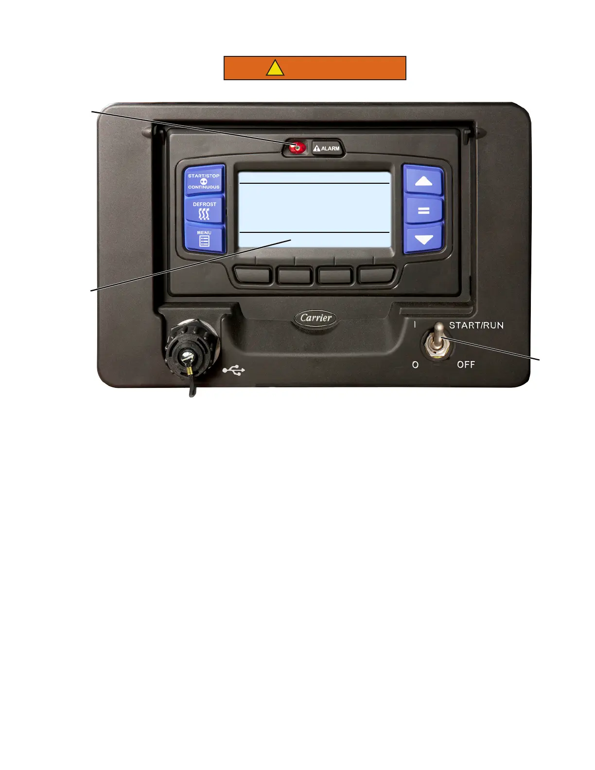 2. The system will display the Carrier Transicold logo, display the default screen, present language selection