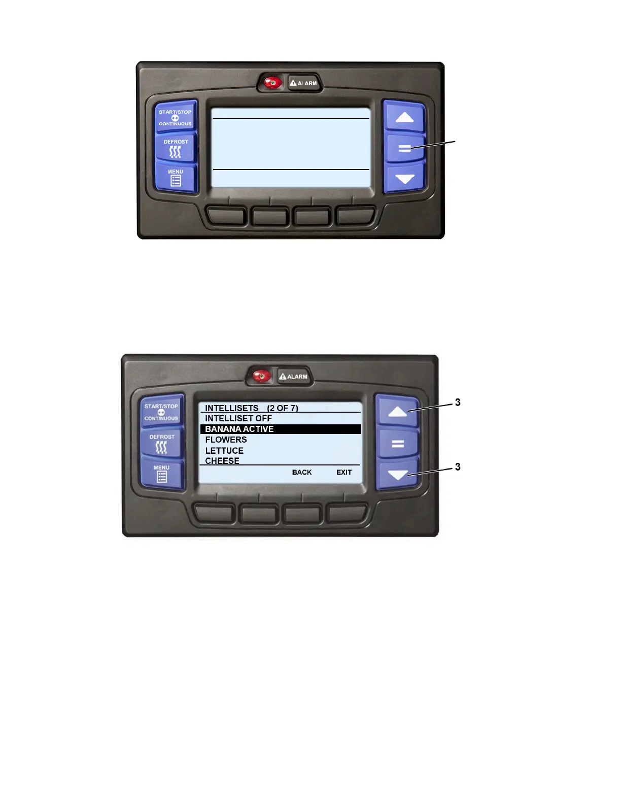 4. Press the ▲ or ▼ key to scroll through the list of available IntelliSets. To change to another IntelliSet, high-
