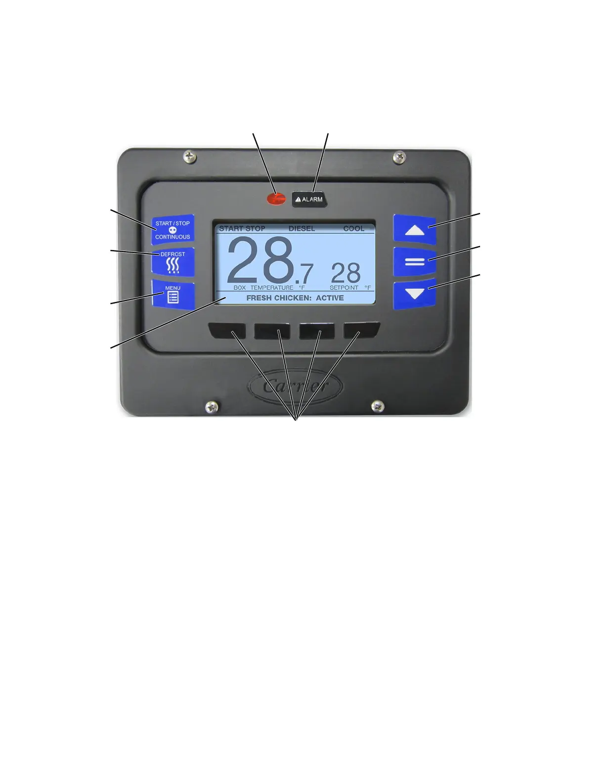 module, displays compartment setpoints, compartment temperatures and operating modes (heat, cool or defrost).