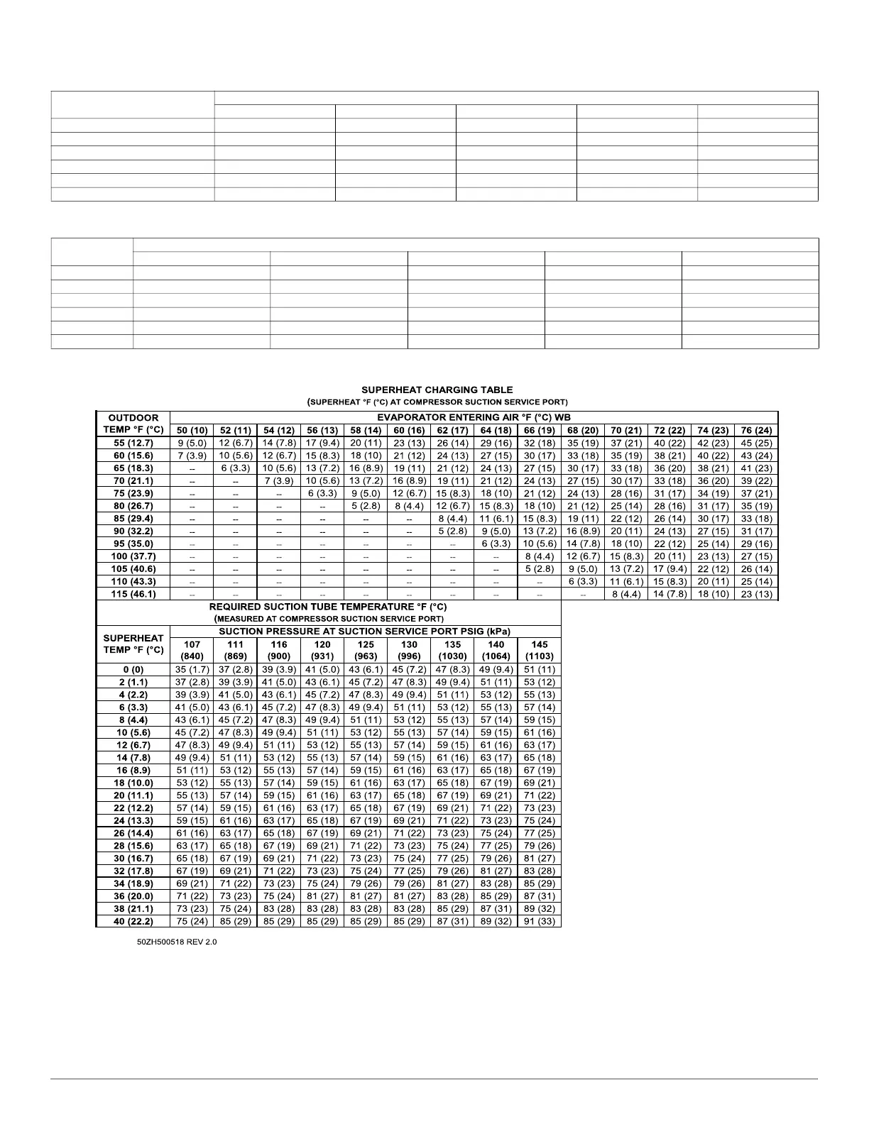 Table 6 – Superheat Charging