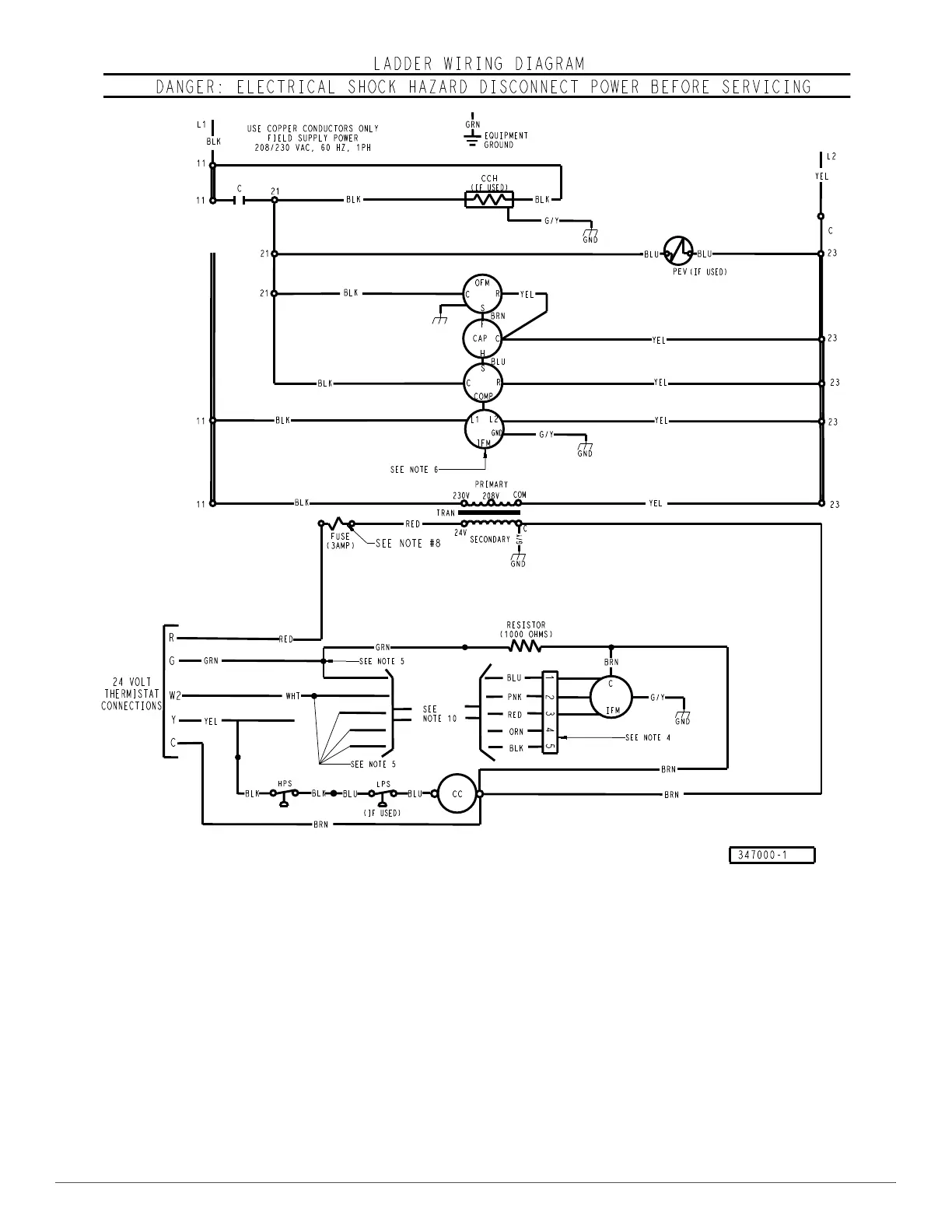 Fig. 34 – Typical Air Conditioning Single-Phase Unit Ladder Electrical Diagram