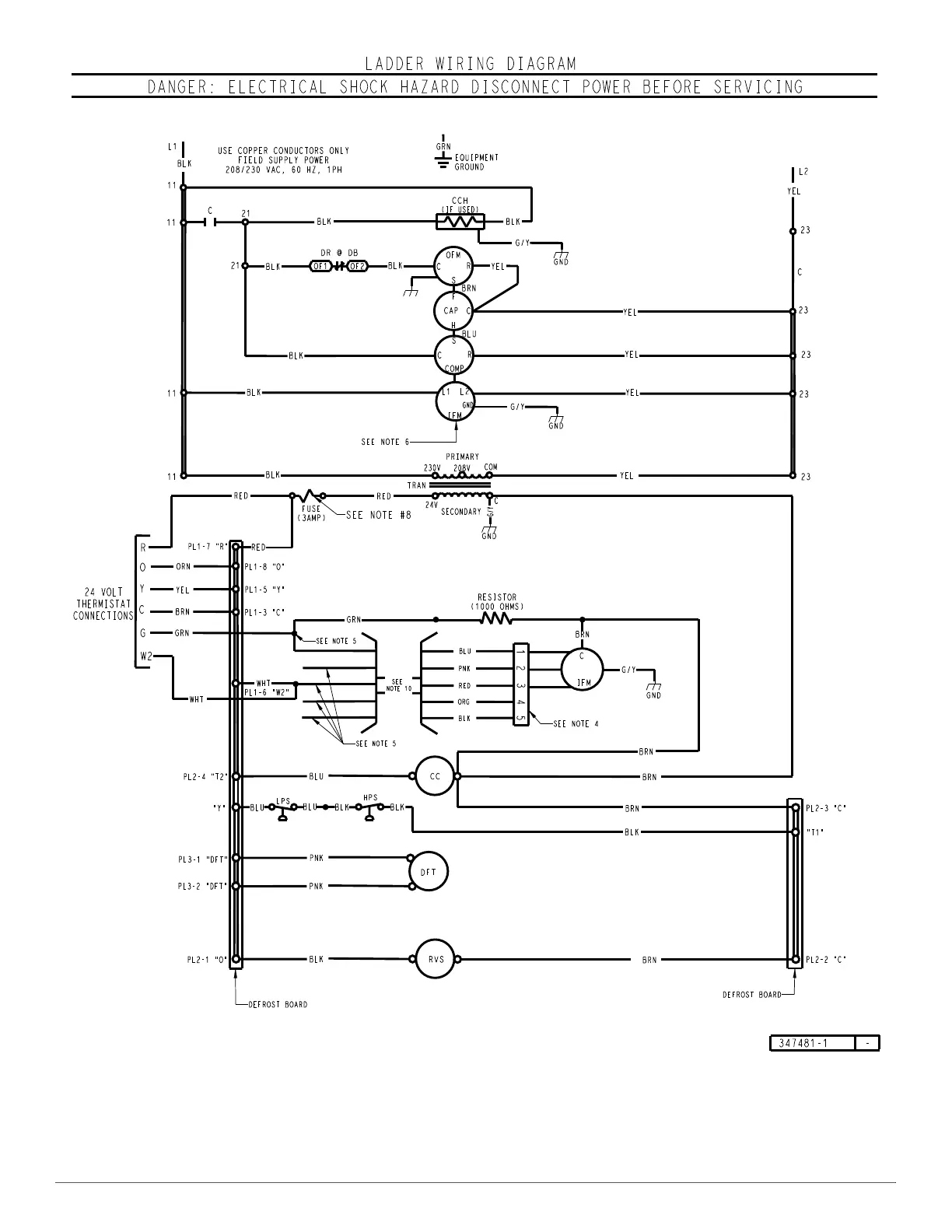 Fig. 36 – Typical Heat Pump Unit Ladder Electrical Diagram