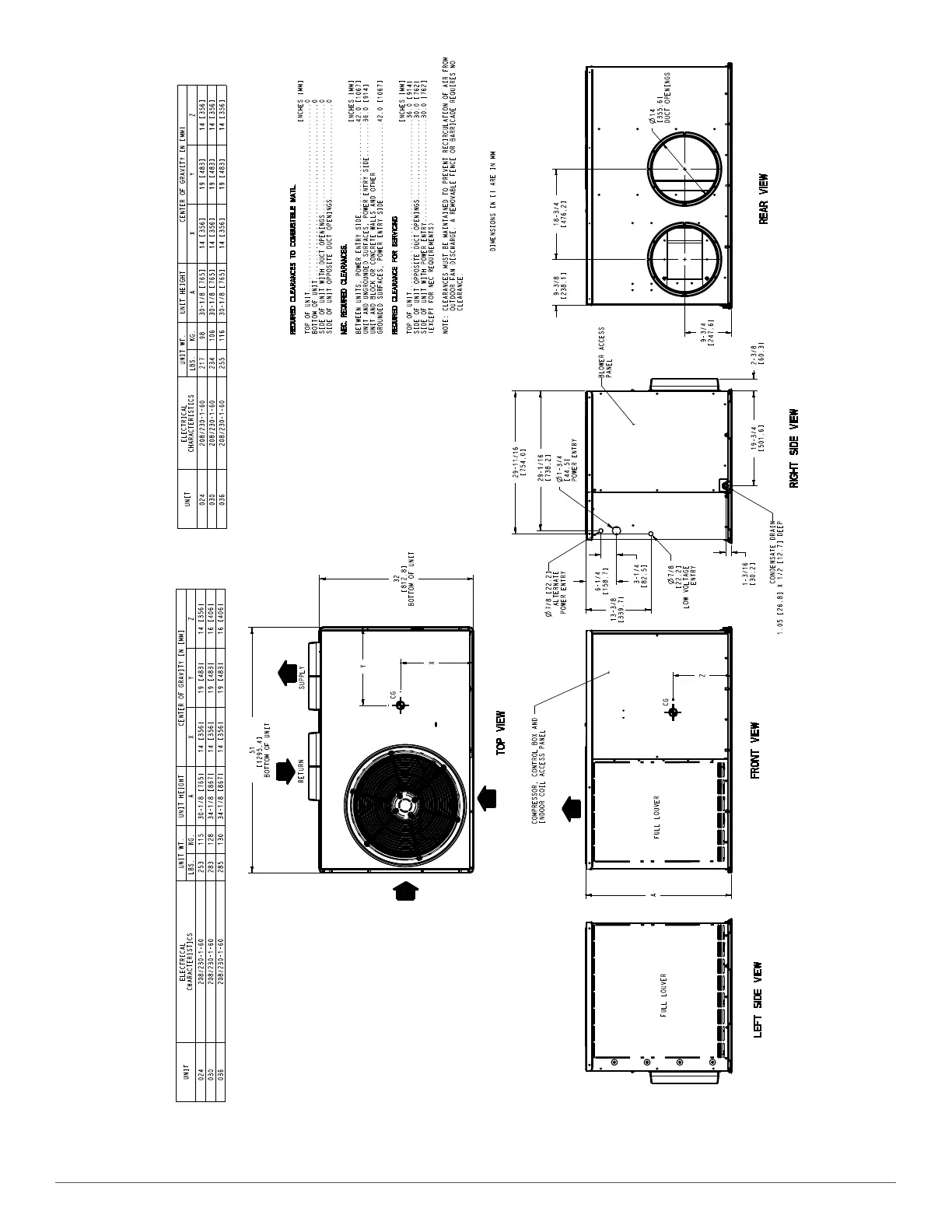 Fig. 3 – Unit Base Dimensions Small & Medium Cabinet with Full Louver