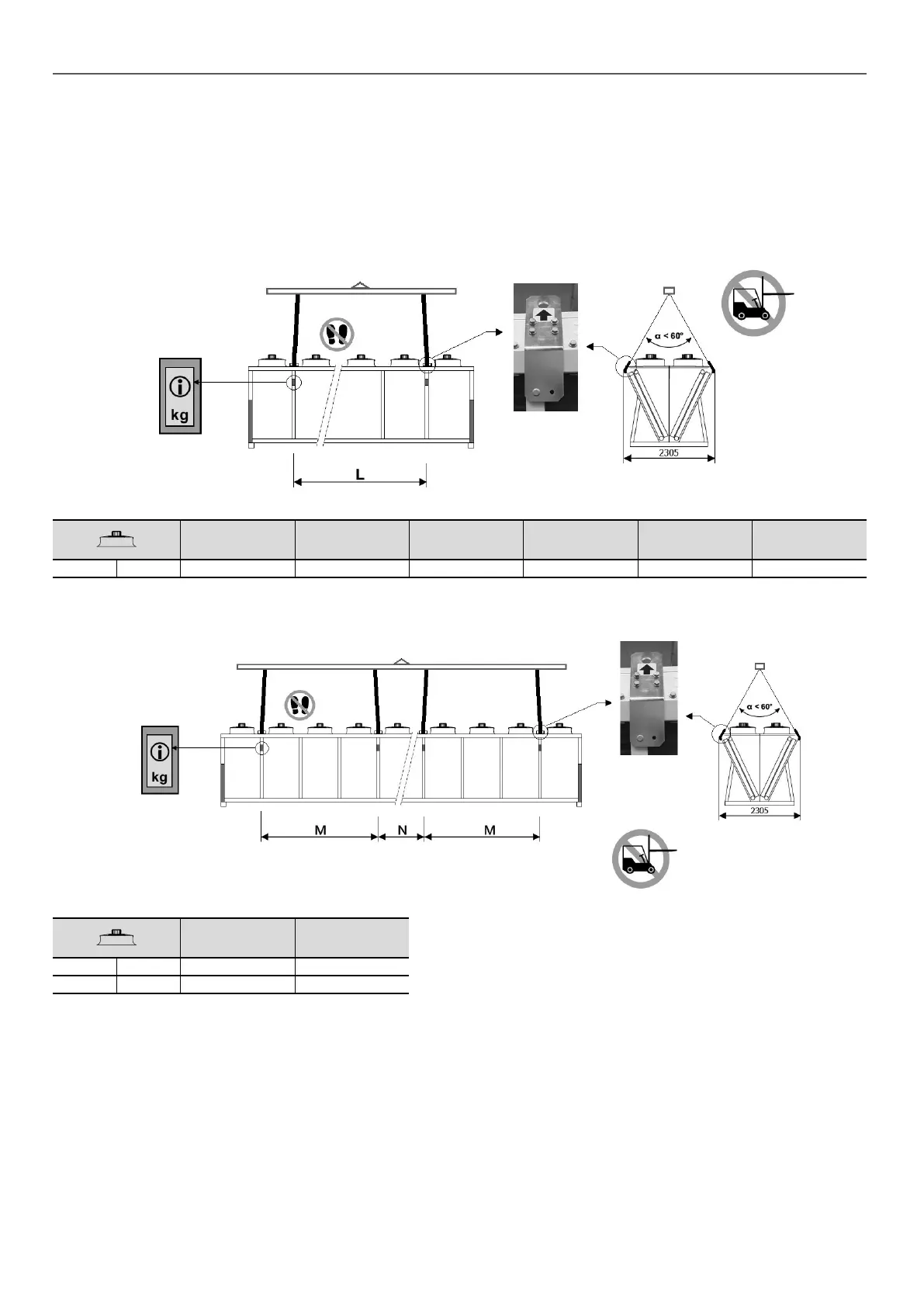 ■ To lift the units, it is essential to refer to the yellow lifting labels afxed to the unit and x the slings to the slinging points shown on