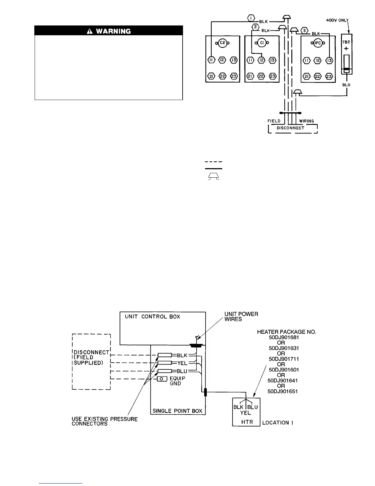 Fig. 7 — Electric Heater Power Wiring Connections — 50LJQ, 220-3-50 and 400-3-50;