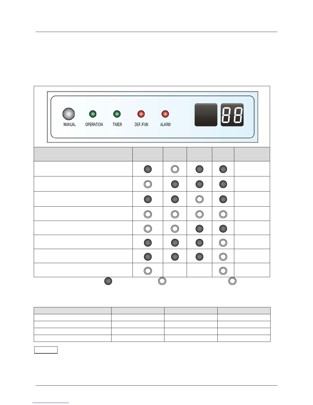 Leds Status and Error Code on the display panel of indoor unit ( all sizes ) refer to